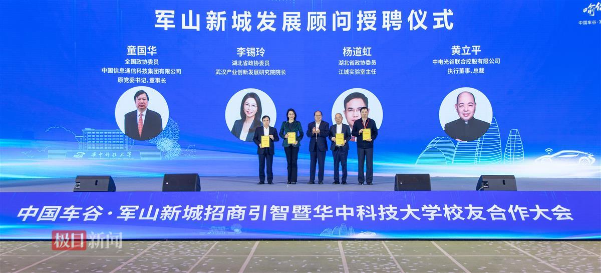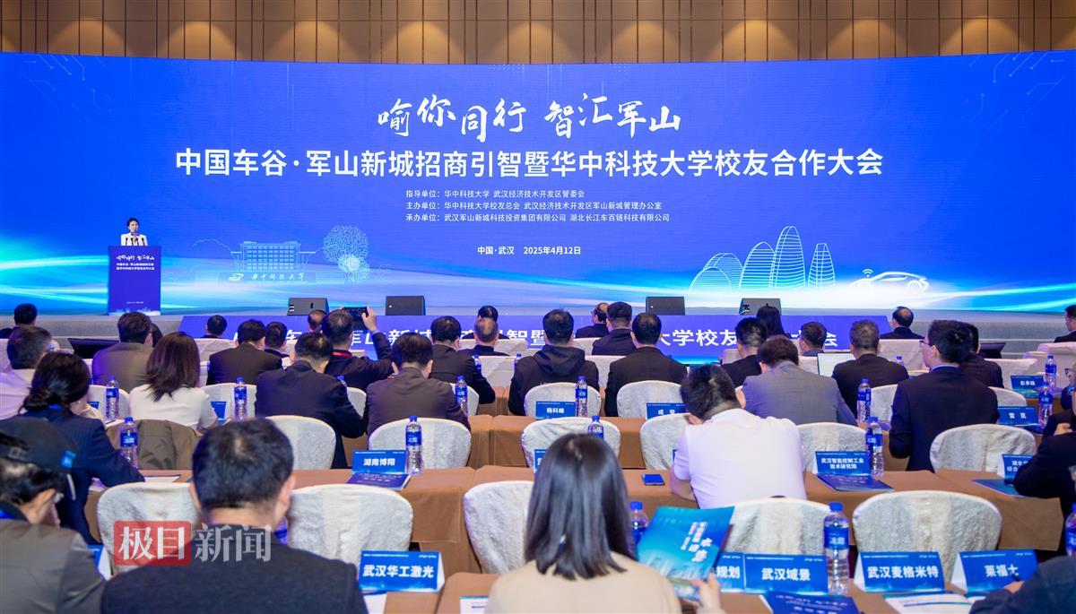 4月12日,中国车谷·军山新城招商引智暨华中科技大学校友合作大会在武汉东湖新技术开发区举行,行业专家、华中科技大学优秀校友企业家、企业及金融机构代表等齐聚一堂,共同见证校地融合发展新篇章。