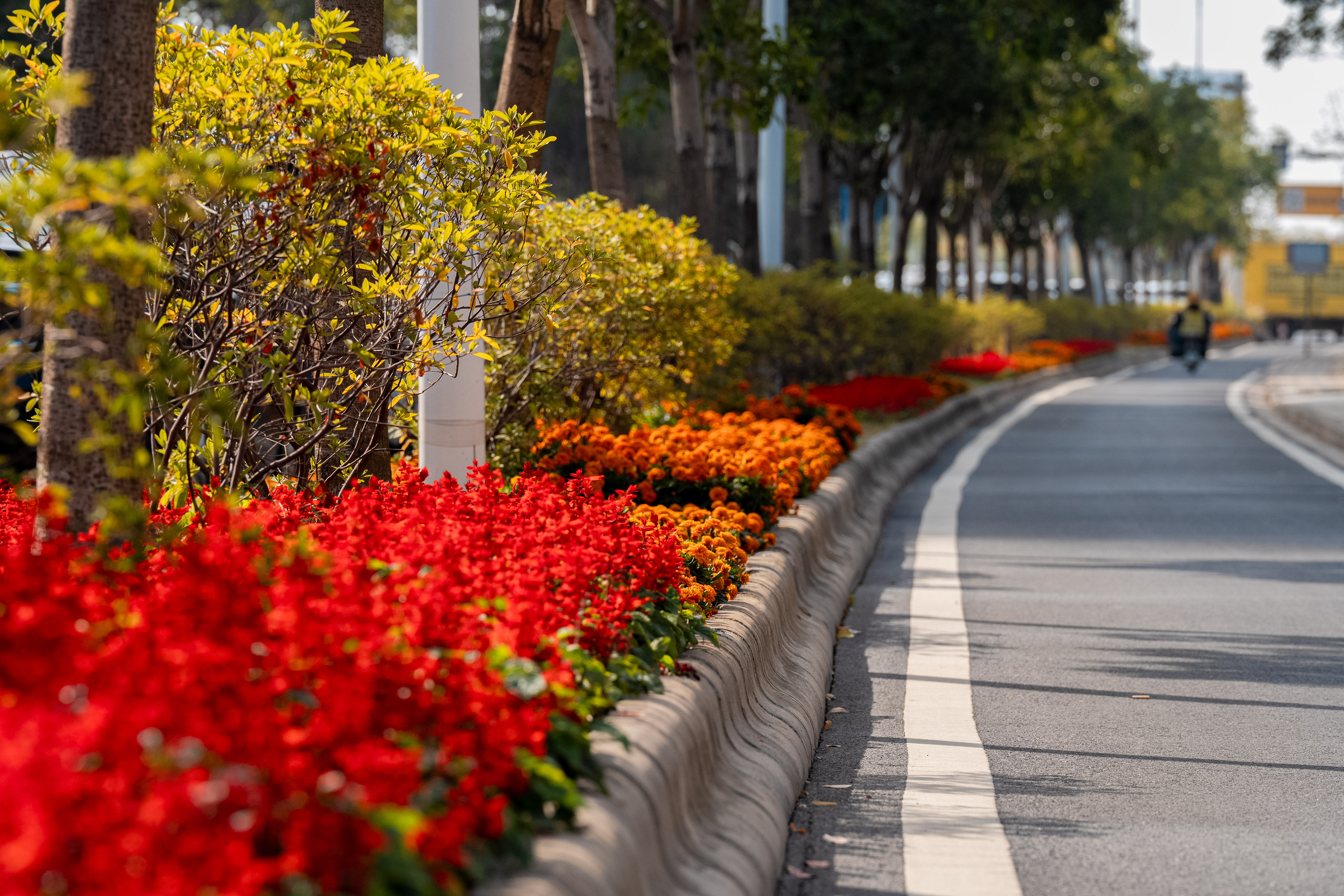橙黄孔雀草怼脸怼到爆!百日草举着大火炬,蹲下来咔咔拍就是ins博主同款九宫格!孔明湖旁,设法山三国公园紫玉兰与水杉交织画,旁边还有儿童乐园,宝妈们遛娃赏花两不误。