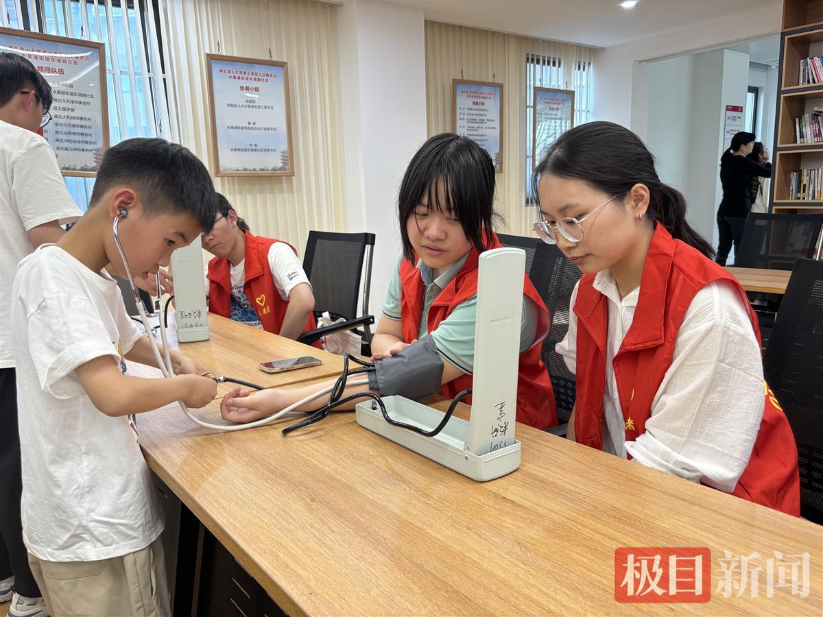 “姐姐,你的血压低压86、高压128,今天数值很正常!我学会用血压计啦!”4月10日下午,武汉市武昌区水果湖街道东湖路社区活动室里,二年级学生豆包学会了使用血压计测量血压,武汉大学基础医学院青年志愿者潘瑶在一旁耐心指导调节血压计袖带松紧度。这温馨一幕,是东湖路社区与武汉大学医学院联合推出的“每周四公益托管”课堂中的场景。从基础健康知识普及到趣味实践操作,这项以“小托管”承载“大民生”的暖心行动,自2024年5月启动以来,已服务辖区50余个双职工家庭。
