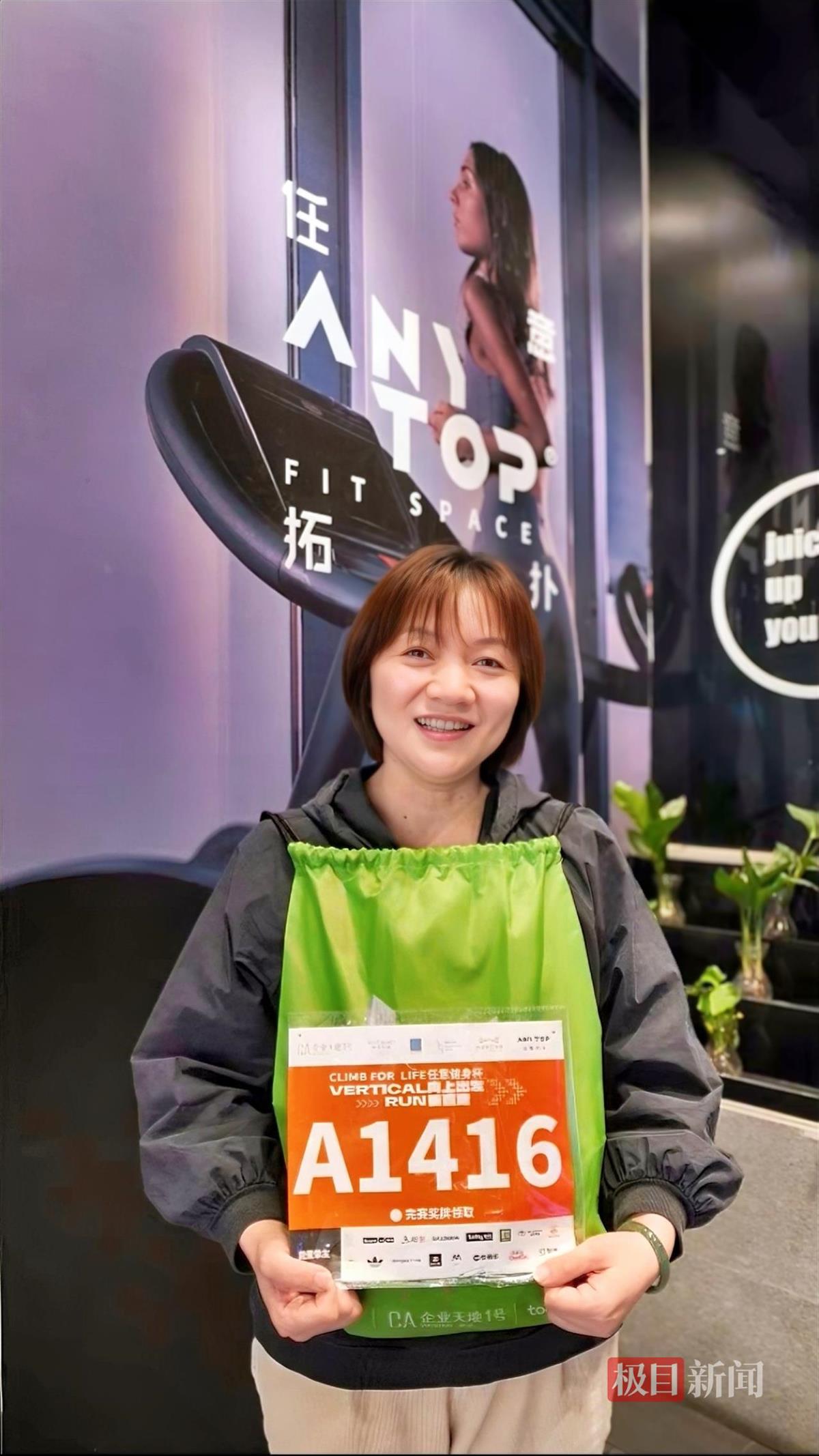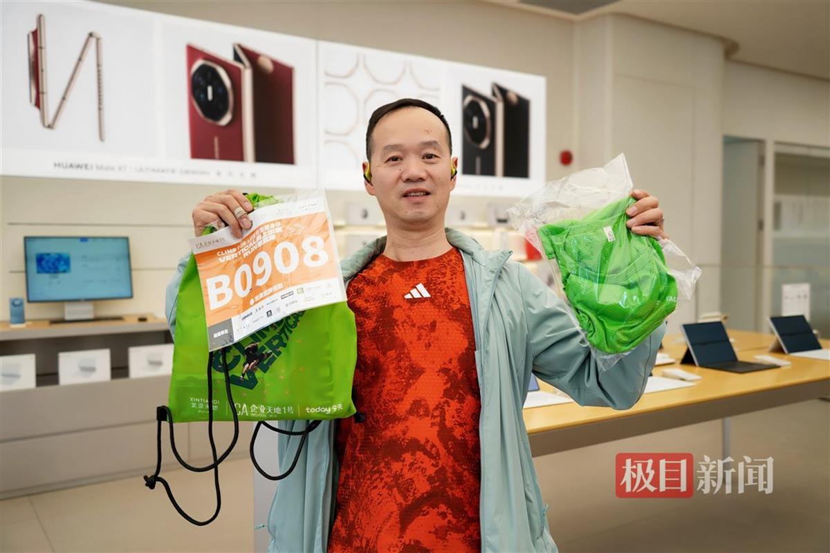 参赛者杨女士告诉新闻记者,自己平时一直有锻炼的习惯,但参加垂直跑还是第一次,她想挑战一下自己,就报名了登顶跑。杨女士说,参赛包内物资很丰富,也让她对即将开始的比赛更加期待,她想尽力登顶,在云端鸟瞰这座英雄的城市。