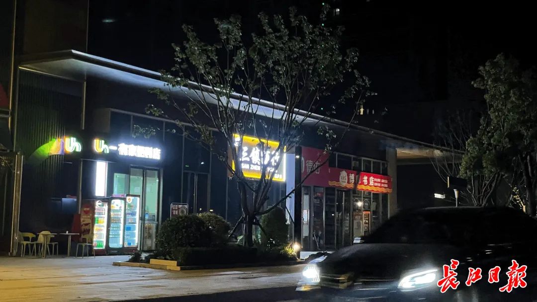 深夜无人自助便利店周围其他店铺都已打烊。长江日报记者杨荣峰摄