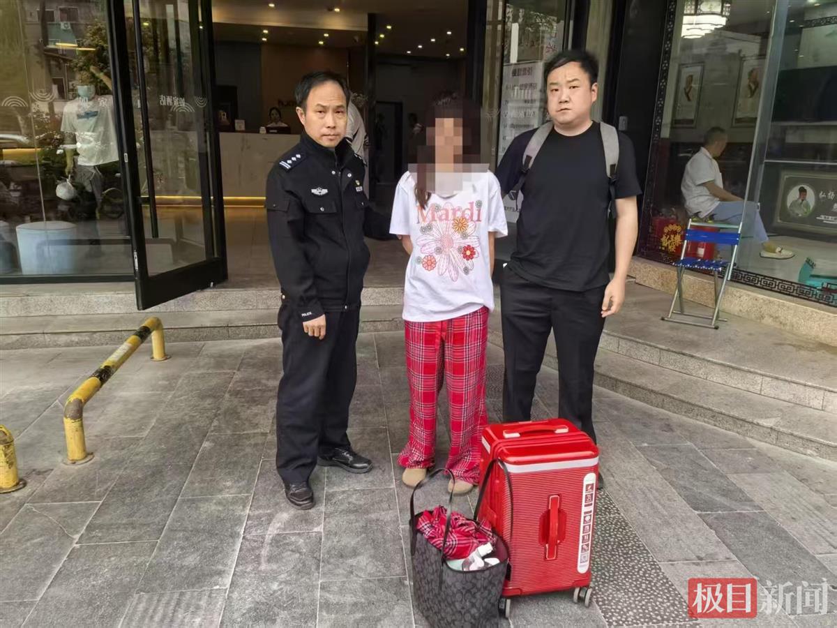 4月11日上午,民警来到江汉路某酒店,确认邓某住在该酒店。经过蹲守,邓某挎着挎包、提着行李箱走出酒店大堂。民警上前亮明身份:“警察,别动!”邓某吃了一惊,挎包掉落在地,各种开封的洗护用品散落了一地。