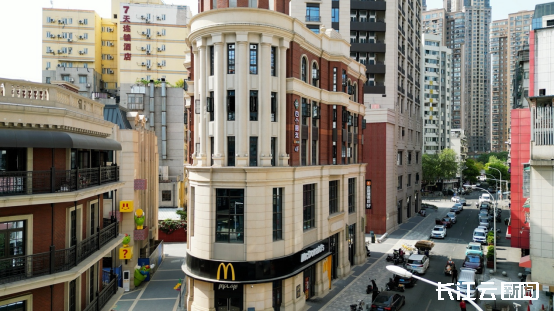 根据网友们提供的线索,我们在老通城·通城印巷找到了相似度最高的美食版“巴公房子”,橙红+白的配色,占地不大还是锐角版的,内部结构为封闭的三角形,坐落在吉庆街旁,找到麦当劳M标记就是到地方了。这里前身汉口历史风貌区内一处民国风情建筑群,可能曾经是用于商贸或者居住,承载了老汉口的商业传统与市井文化,现在已经有很多咖啡馆、酒吧、酒店入驻,加紧施工中,如今它被重新定位为夜经济与文化消费地标。