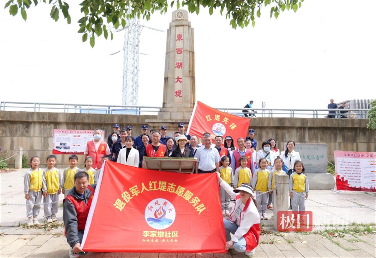 4月16日上午,武汉市东西湖区李家墩社区以“守护红堤·传承精神”为主题,在东西湖大堤纪念碑前举行退役军人“红堤志愿服务队”成立仪式暨社区“红堤”文化品牌塑造活动。社区党员、退役军人、居民志愿者及粤创消防站、李家墩泵站、尚达育儿园等近50人齐聚一堂,共同见证这一文化品牌的启航。