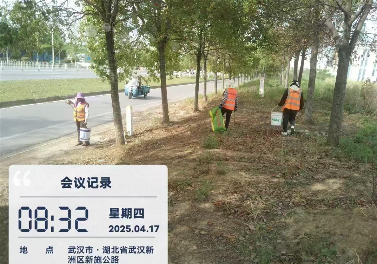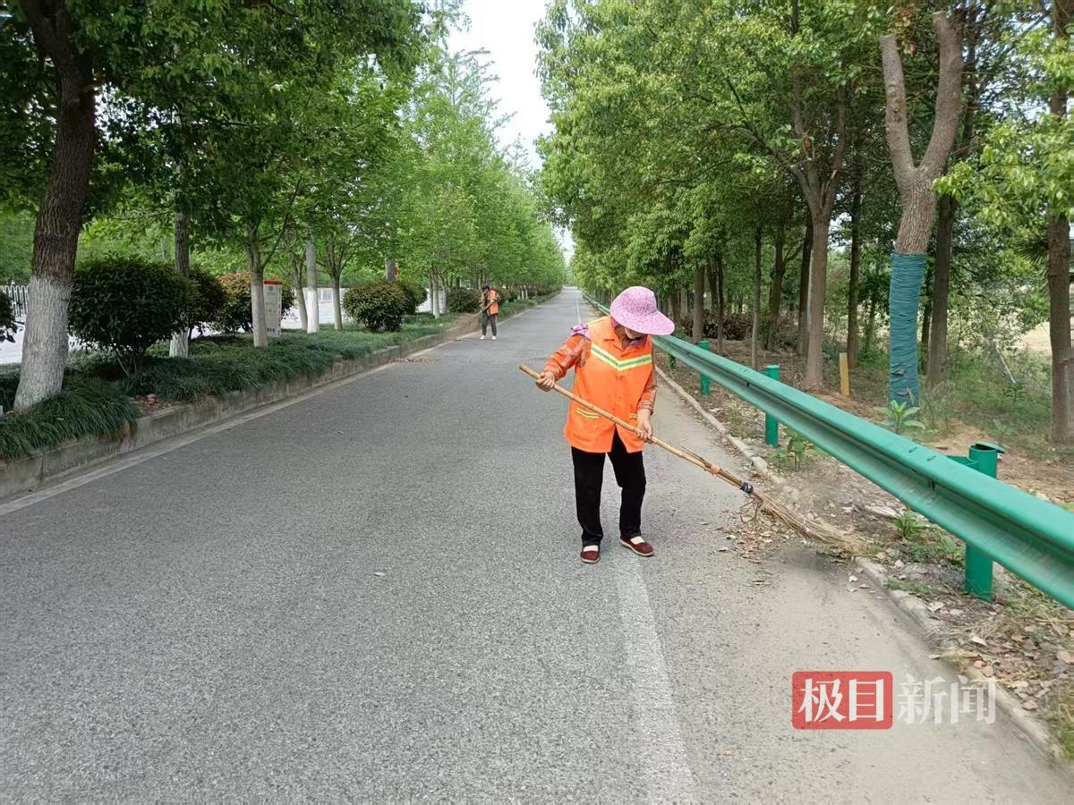 4月17日,在武汉新洲区新施公路沿线,身穿橙色工作服的环卫工人与志愿者正在有序清理道路两侧堆放的杂物,对积尘路段进行深度清扫,这是该区每月开展四次的“道路环境提升专项行动”常态化工作场景。