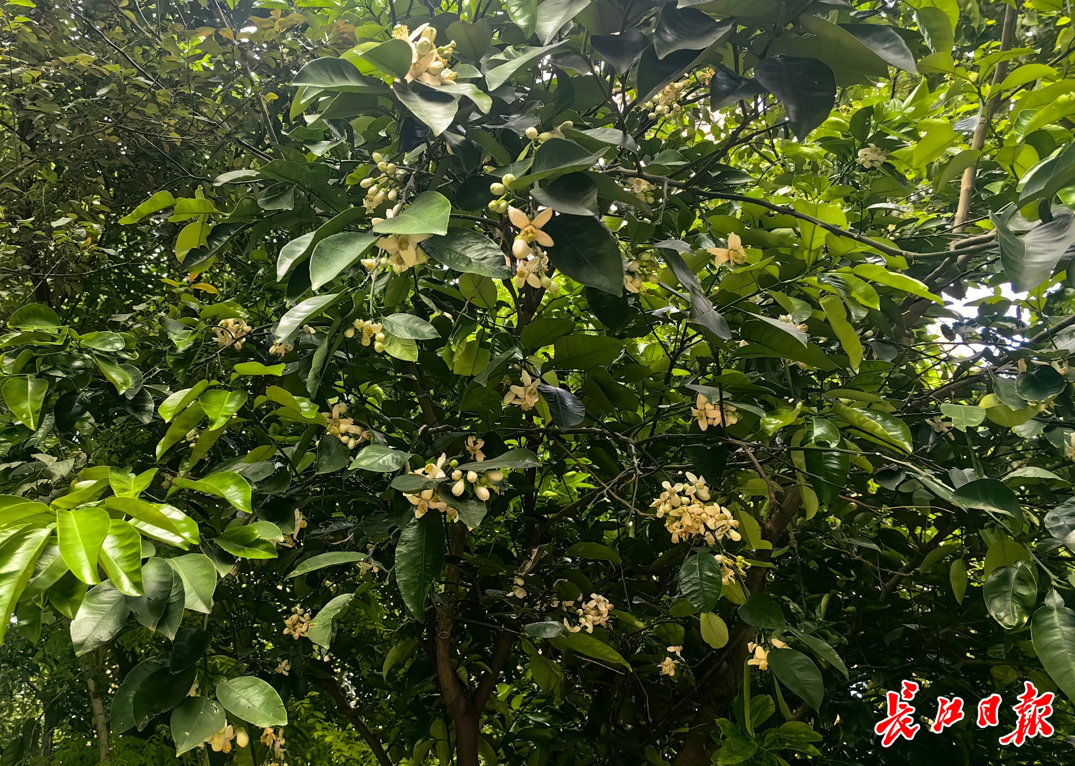 江岸区塔子湖一小区内的柚子花。长江日报记者 孙笑天 摄
