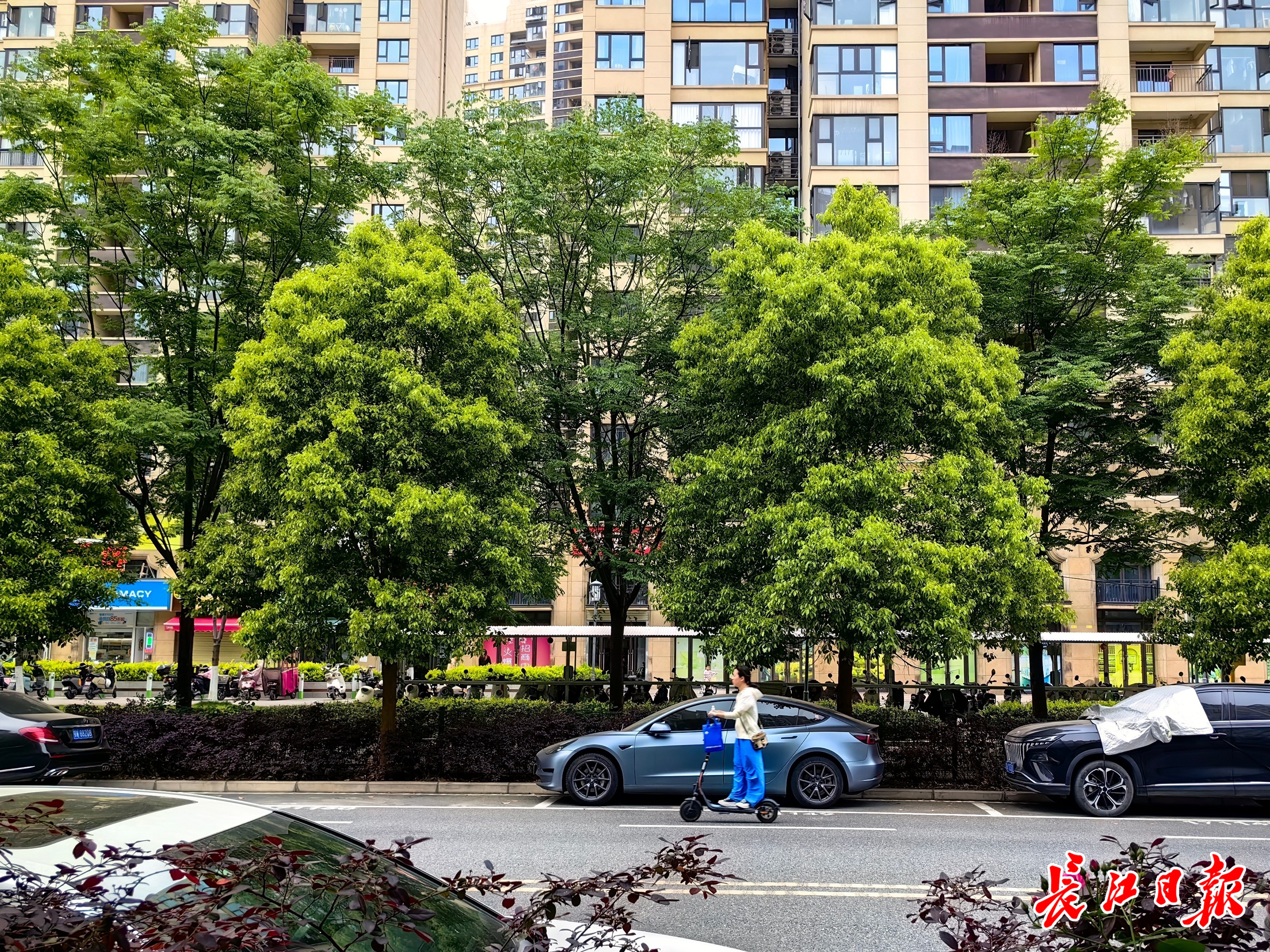 江岸区景秀街上的香樟行道树。长江日报记者 孙笑天 摄