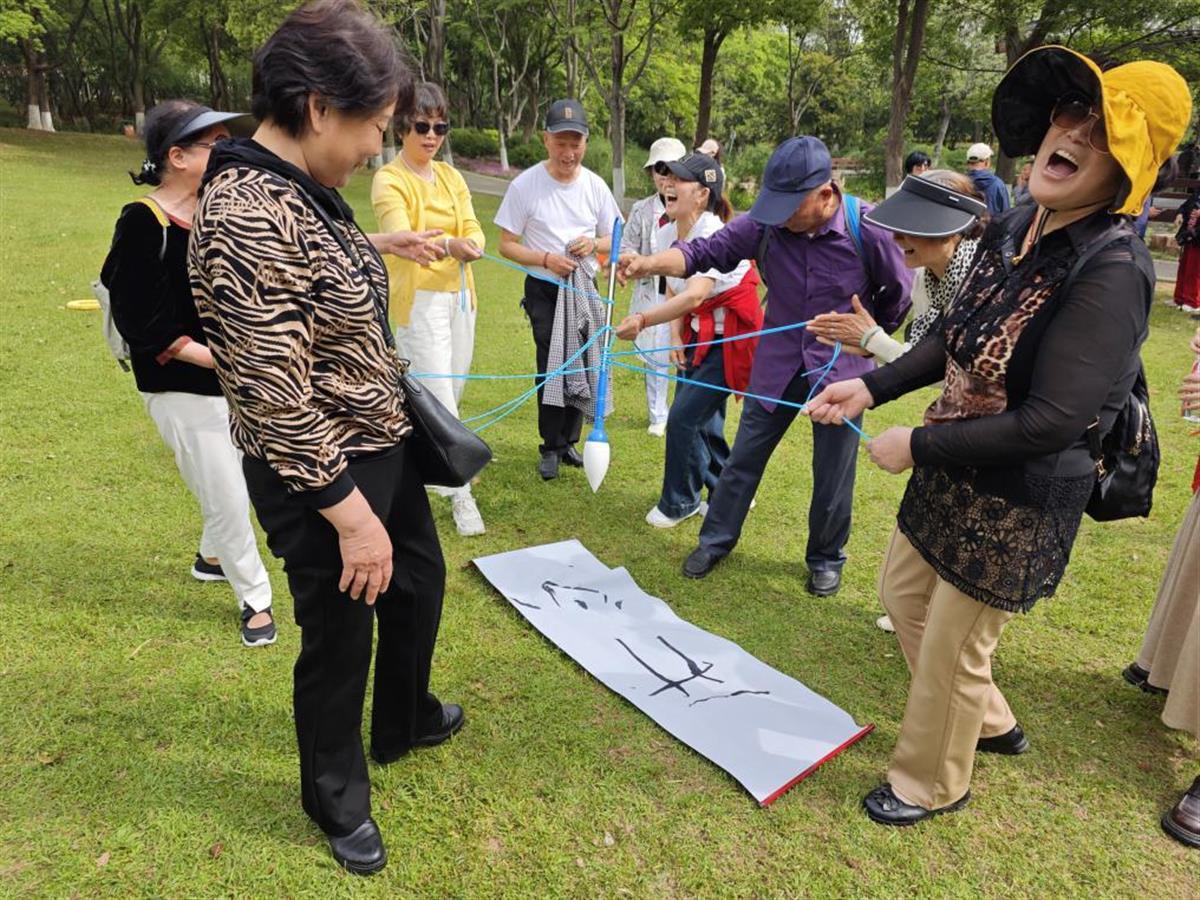 表演结束后,趣味游戏的开展让现场充满了欢声笑语,“妙笔生花”“听歌识曲”“极限三子棋”等游戏项目让老人们笑得合不拢嘴。其中,“听歌识曲”环节最受大家欢迎。经典老歌片段前奏一响起,队伍中的陈阿姨则迅速抢答说出歌名,反应之快令人称赞,各小组纷纷摩拳擦掌跃跃欲试。