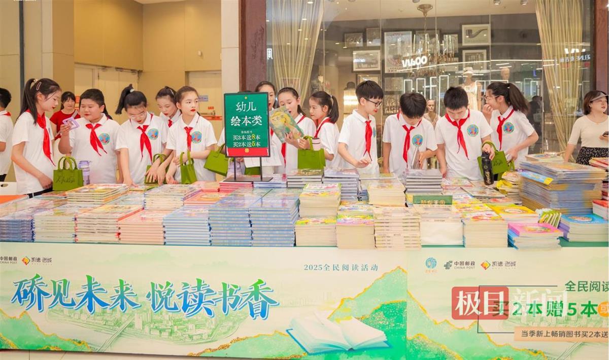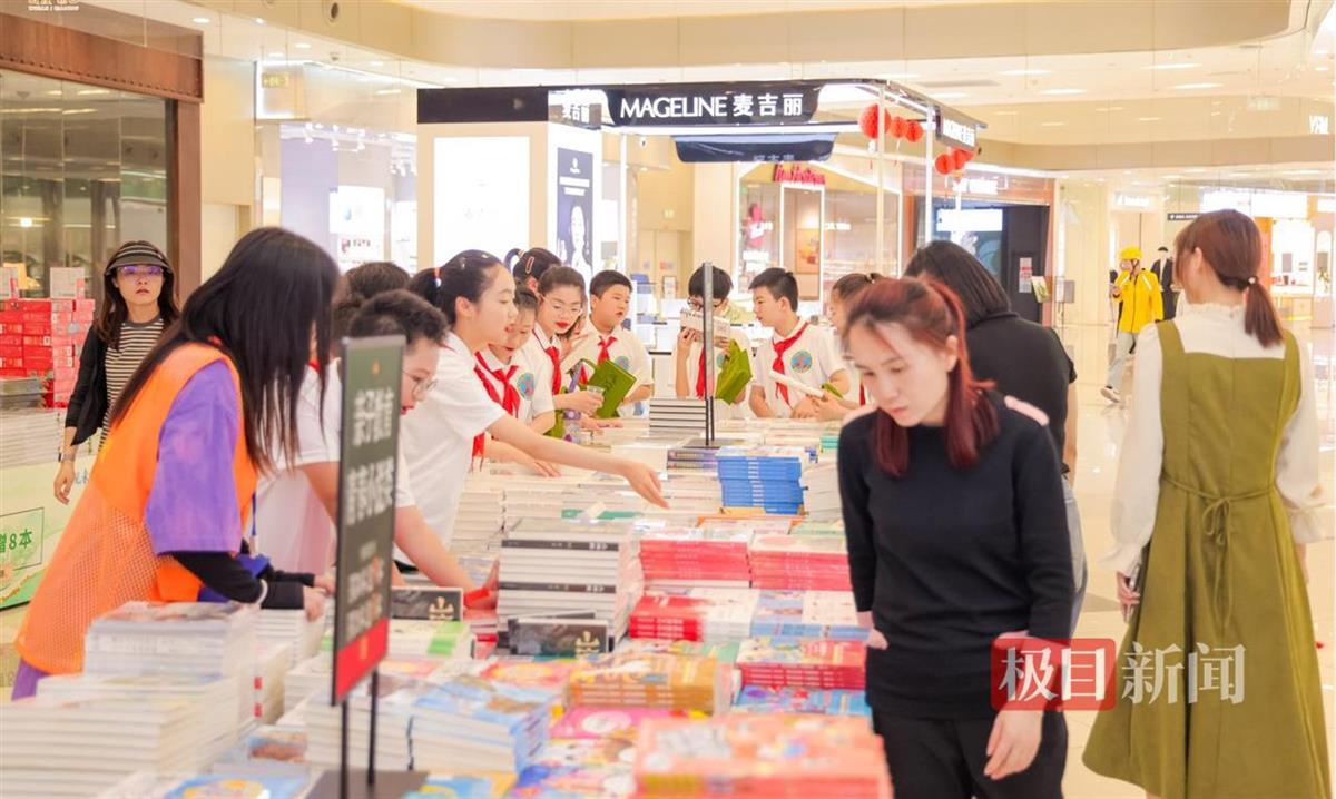 4月18日,武汉市硚口区凯德西城竹林中庭摆满了琳琅满目的各类书籍,无论是中小学生、青年人还是老年居民们,都驻足翻看,为现场带来了浓厚的读书氛围。伴随着悠扬的民谣吉他声,2025年硚口区“硚见未来、悦读书香”系列全民阅读活动也在此正式开启,为硚口区居民们带来了丰富的阅读惠民内容,如学习积分换书、优秀出版物特价展销、线上阅读活动等,为居民们营造爱读书、读好书、善读书的良好氛围,推进“书香硚口”建设向纵深发展。