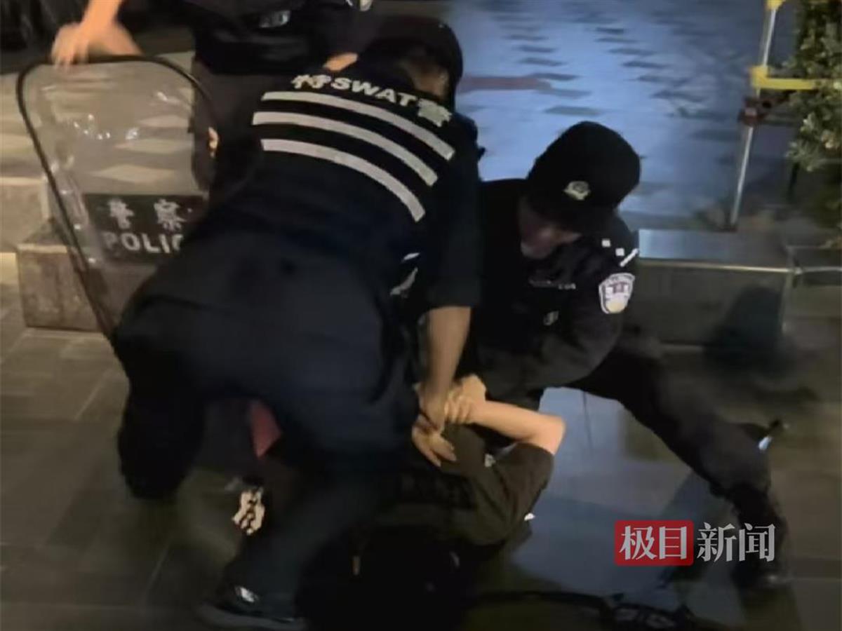 卢晓峰的英勇表现远不止于此。2024年8月22日凌晨,江汉区发生一起持刀伤人案,他带领6名队员迅速赶到现场。面对情绪激动、手持带血剪刀的嫌疑人,卢晓峰冷静部署:“我在背后,你们在两侧,看我信号行动。”他悄悄绕到嫌疑人身后,与队员眼神交会,做出“OK”手势后果断出手,一个锁绞动作控制住对方,在队员们的默契配合下,迅速将其制服。同年4月,在抓捕一名涉毒大案嫌疑人的行动中,对方手持凶器疯狂挥舞,卢晓峰毫不犹豫飞身扑去,顶膝击打其腹部,然后别臂控制其右手,与队员协同,成功制敌。
