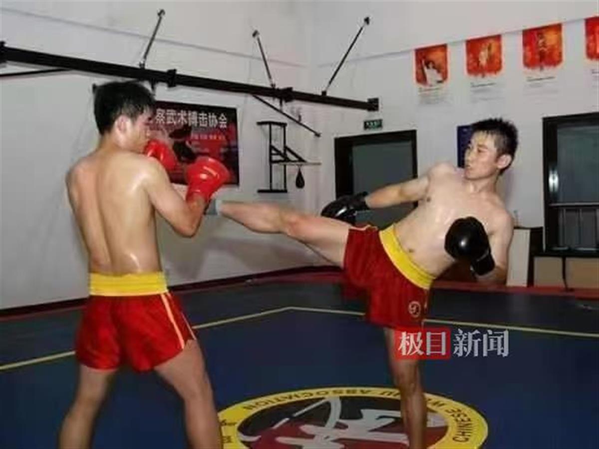 年少时期的卢晓峰在进行散打训练