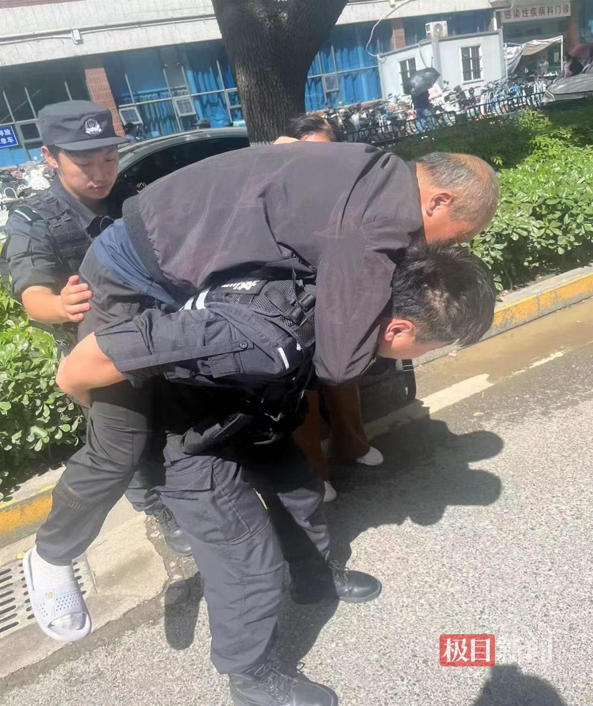 当日上午10时15分,武汉特警06巡控组巡逻至协和医院附近,发现路边有一对老年夫妻,爹爹瘫坐在地上,婆婆在旁边哭泣。特警队员立即上前询问,得知爹爹姓段,63岁,患有偏瘫,前往医院途中,身体突然失去知觉,倒在地上。婆婆无力扶他站起。