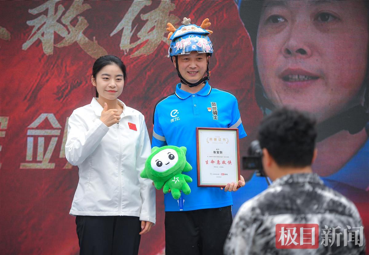 当湖北体彩公益形象大使、里约奥运会跳水冠军刘蕙瑕为他颁奖时,张宝剑激动地说:“这份荣誉不仅是对我个人的肯定,更是对我们所有外卖骑手、快递员等劳动者的认可和鼓励。我们虽然平凡,但也能用自己的行动为这座城市增添一份温暖和力量。同时,我非常敬佩奥运冠军刘蕙瑕,她是为国争光的英雄。相比之下,我所做的只是举手之劳,能够得到这样的荣誉,我真的感到无比荣幸和深深感激。”