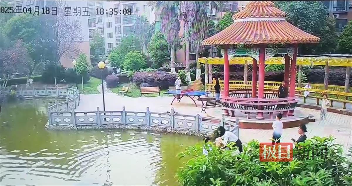 4岁小女孩玩耍时翻过护栏跌入水中,巡逻保安来不及脱掉衣服鞋子,10秒将小女孩救起,业主纷纷点赞。