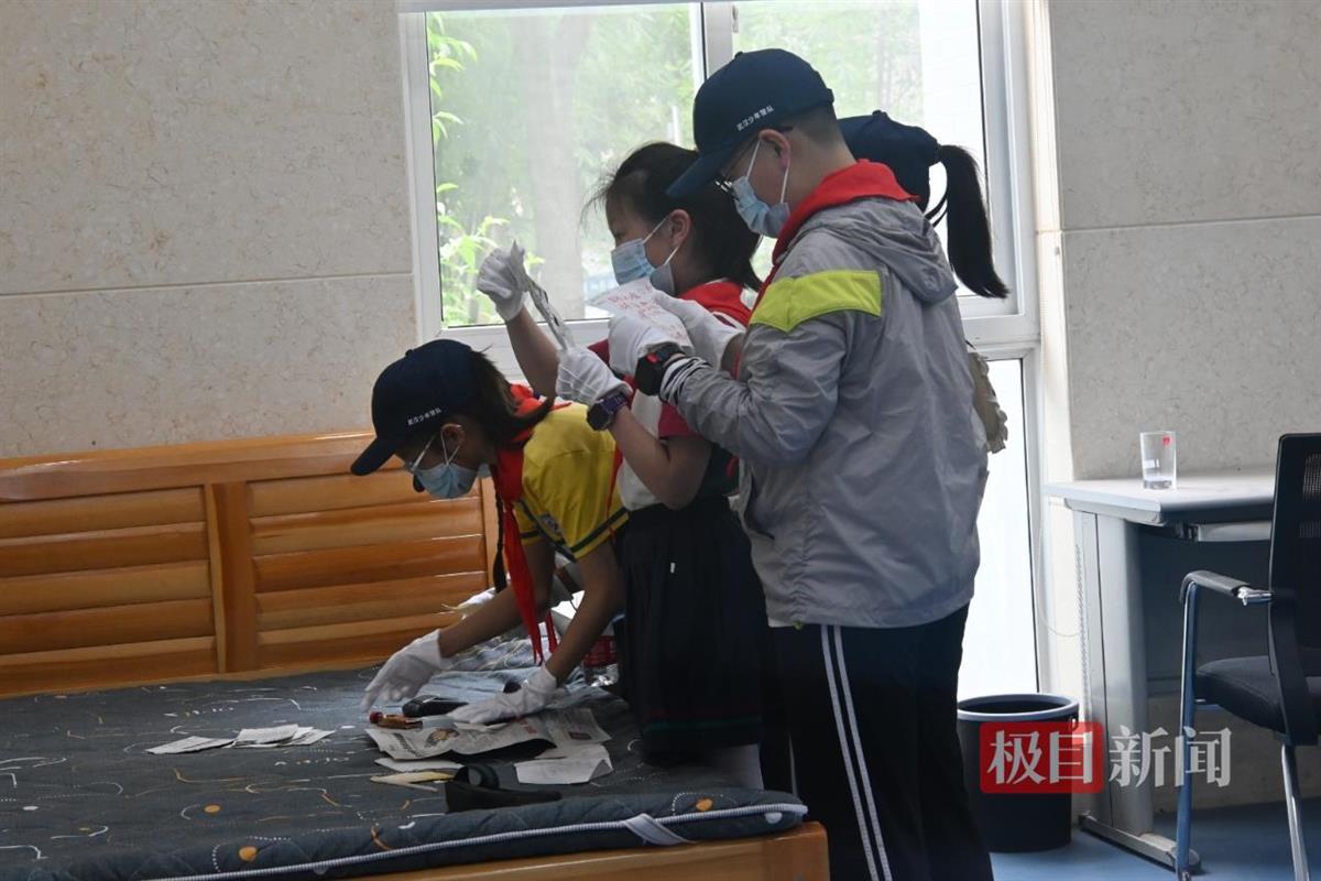 武汉少年警队队员体验模拟现场勘察(摄影:朱宇康)