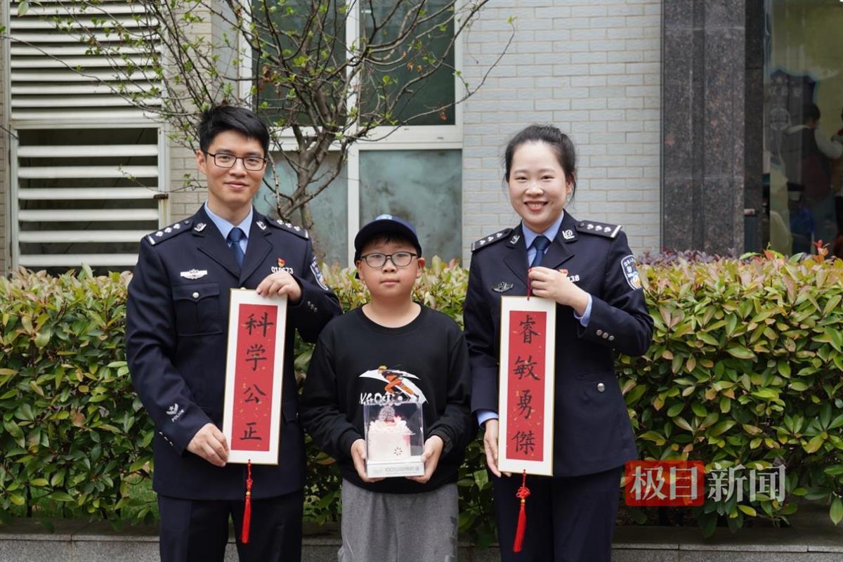 刑侦专业训练中心的模拟警情将活动推向高潮——“生日蛋糕离奇失踪!”小侦探们分组勘查,在警戒线外细致观察。“矿泉水瓶身有指纹!”“地板上发现脚印!”随着物证不断检出,真相浮出水面:原是“嫌疑人”担心高温导致蛋糕融化,悄悄将其转移至冰箱。惊喜接踵而至,辅导员阮洋捧着生日蛋糕走向当天满11周岁的周宇阳,突如其来的祝福让少年又惊又喜:“今天的体验太震撼了,我将来一定要成为这里的刑警!”