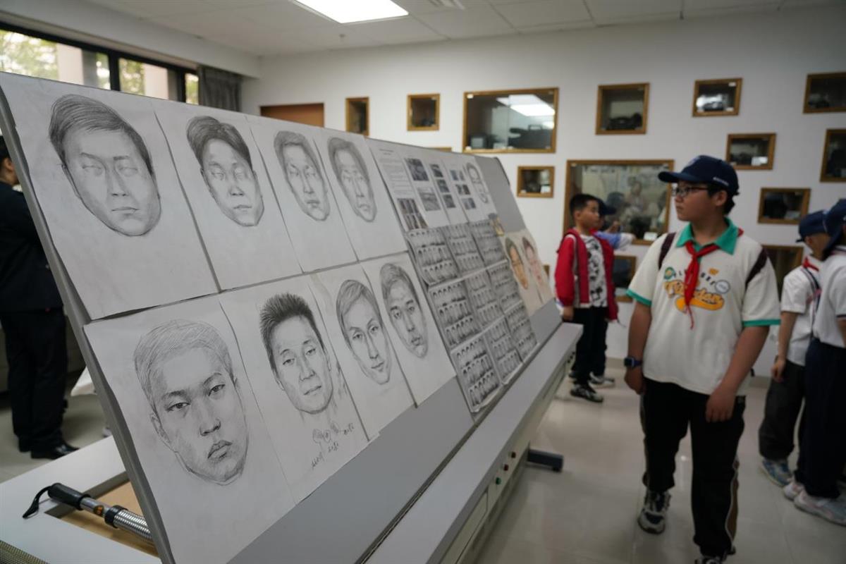 武汉少年警队队员参观摹拟画像工作室(摄影:谢家漫)