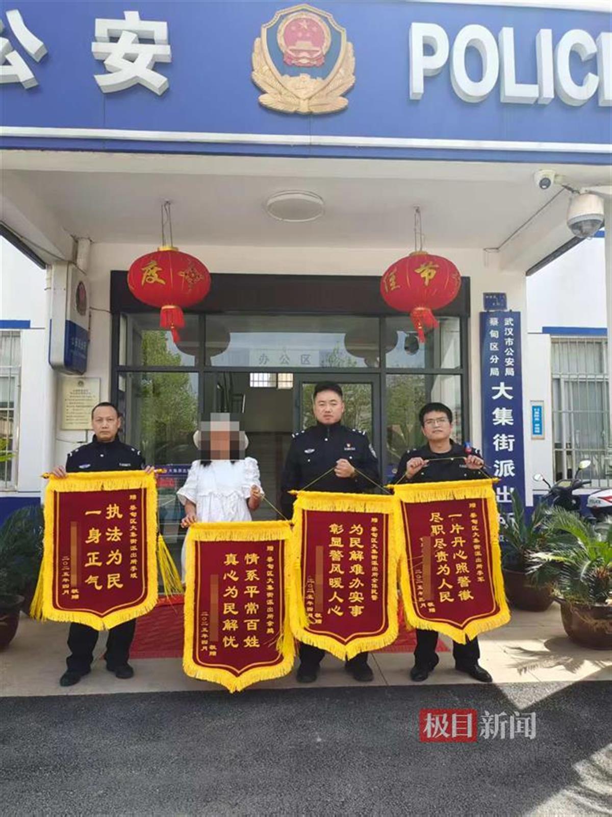 4月15日清晨,武汉蔡甸区大集街派出所的晨会刚结束,值班室就传来一阵爽朗的笑声。辖区居民李女士抱着四面红彤彤的锦旗跨进大门,特意来感谢两个月里两次为她解忧的民警们。