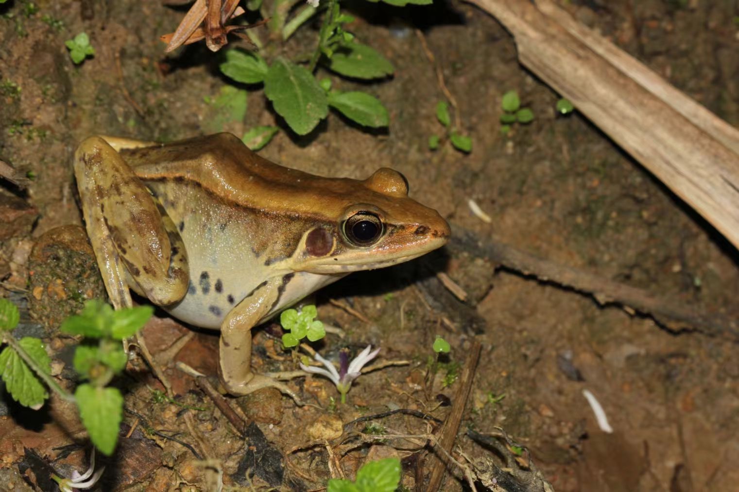 在天兴洲拍摄到的黑斑侧褶蛙。谌辉 摄