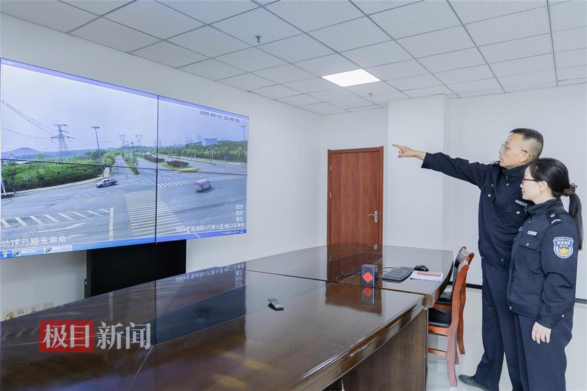 朱剑威和同事在查看重点路段监控