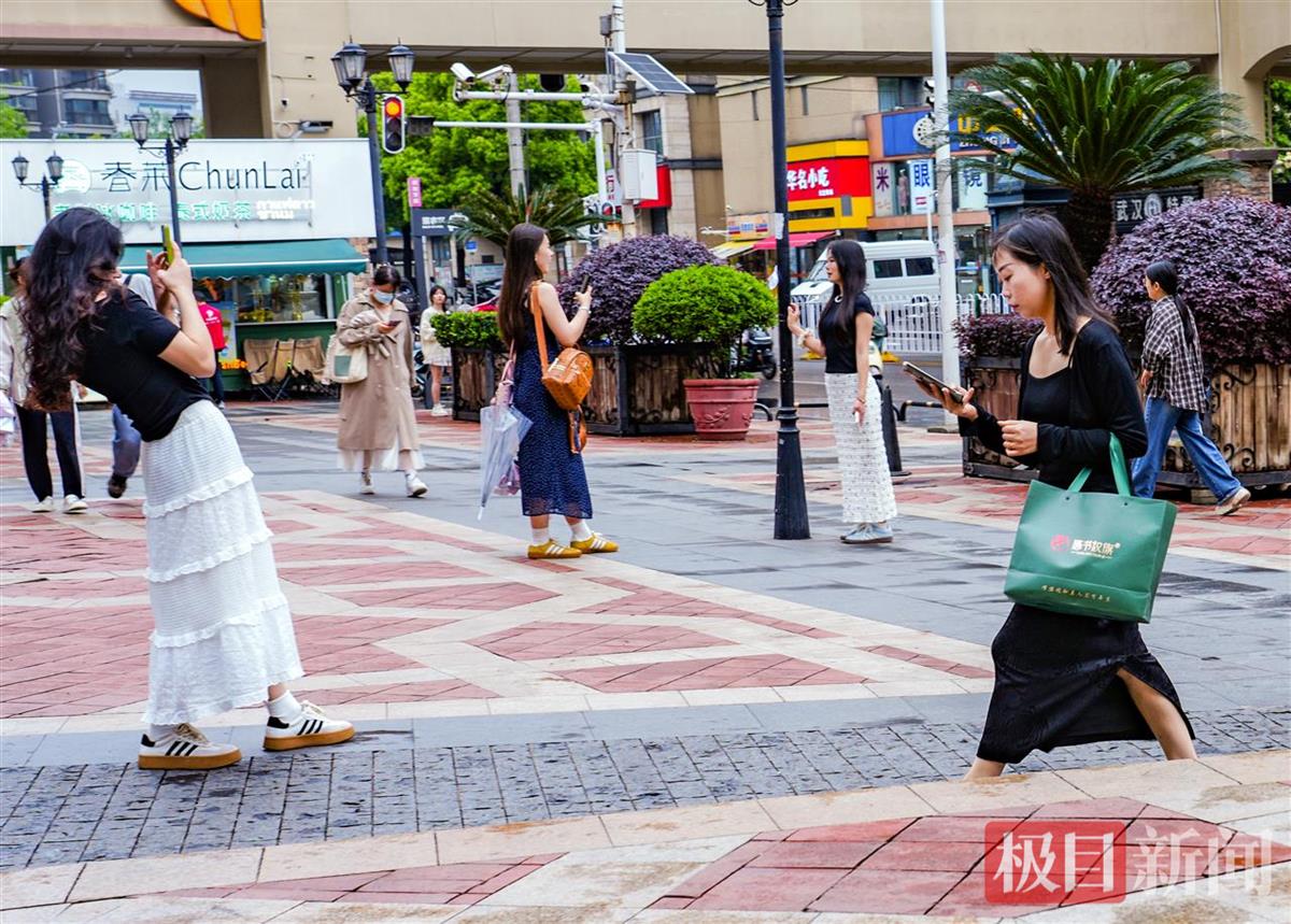 雨后,光谷步行街上,打卡的市民游客多了起来