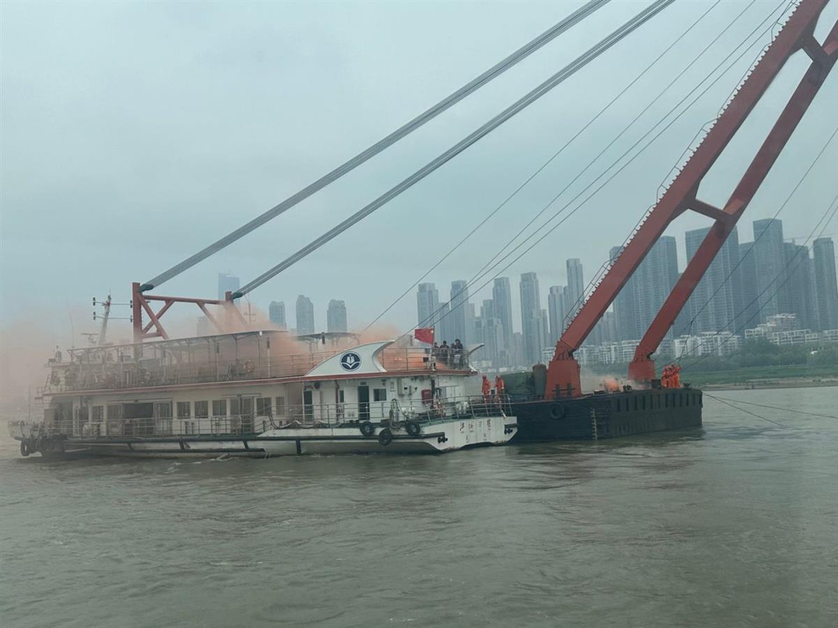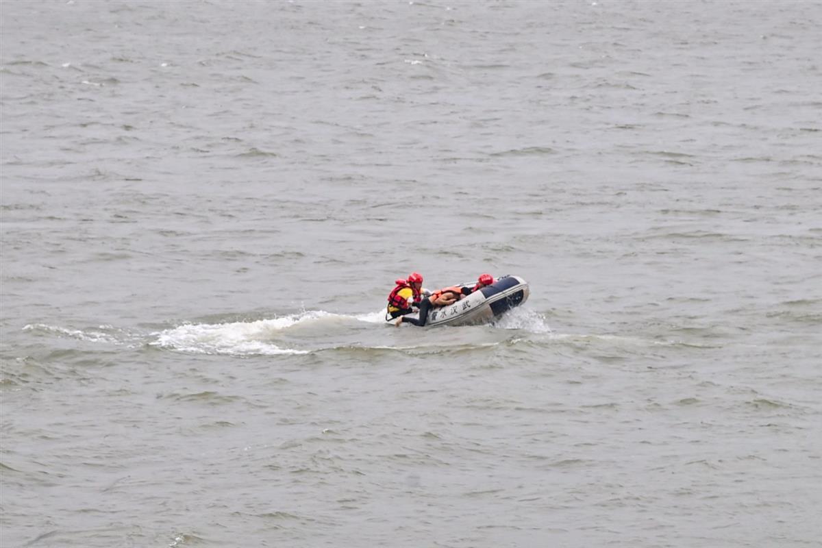 4月22日上午,武汉天空阴沉,长江武汉段风大浪急。江城1号碰撞起吊船,造成3名船员落水,船舶失火,货物落入江中……无人机投圈,无人艇救援,水炮船灭火,潜水员打捞,一场以“大美长江、大爱救助”为主题,由武汉市公安局水上分局(以下简称“水上分局”)、长江武汉水上应急救助基地(以下简称“武汉救助基地”)联合开展的2025年长江武汉段水上应急救助综合演练举行,武汉长江航道救助打捞局、武汉海事局、武汉市水上消防救援大队、武汉利记轮渡集团有限公司等多家单位及社会救援力量“长江义警”响应出动,救援演练有序进行。