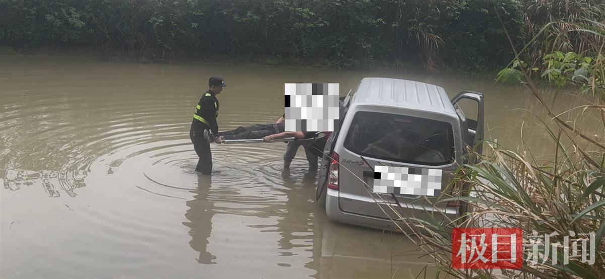 “纸贺路宁港草莓园附近有车辆冲入水塘,人员受伤被困!”6时58分,骤雨初歇,一条紧急指令也随之传达到乌龙泉街派出所。民警戴希辉火速带领辅警张周拉响警笛,仅用5分钟就赶到现场。跳下警车一眼便看见20米外的水塘里,一辆银色的面包车陷入淤泥中,水已淹没至车辆后备箱,还有一双脚伸出车外。