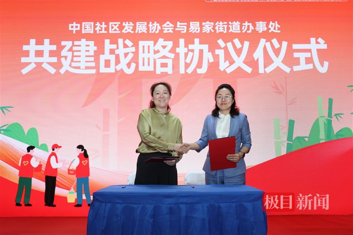 座谈会结束后,共建协议签署启动仪式在竹叶海社区一楼百姓大舞台隆重举行。硚口区委常委、政法委书记徐岗与中国社区发展协会副会长王波分别致辞,表达对共建行动的高度重视与殷切期望。随后,中国社区发展协会与易家街道办事处正式签署共建战略协议,标志着双方的合作从规划迈向实践。