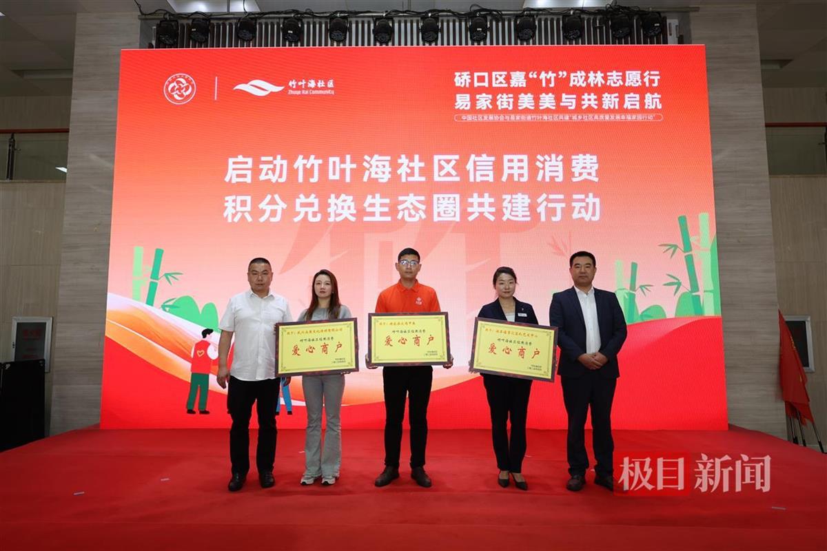 现场,易家街道社区信用消费体系建设项目启动、志愿服务队授旗仪式、党员代表志愿故事分享、竹叶海社区“绿色积分”2.0版本发布等一系列活动轮番上演。“绿色积分”2.0版本公布了最新的积分兑换志愿服务内容,还表彰了第一批优秀志愿者,激励更多居民投身志愿服务。此外,社区物业代表发起《快递、外卖社区友好倡议书》,爱心企业纷纷捐赠物资和善款,共同启动竹叶海社区信用消费积分兑换生态圈共建行动。