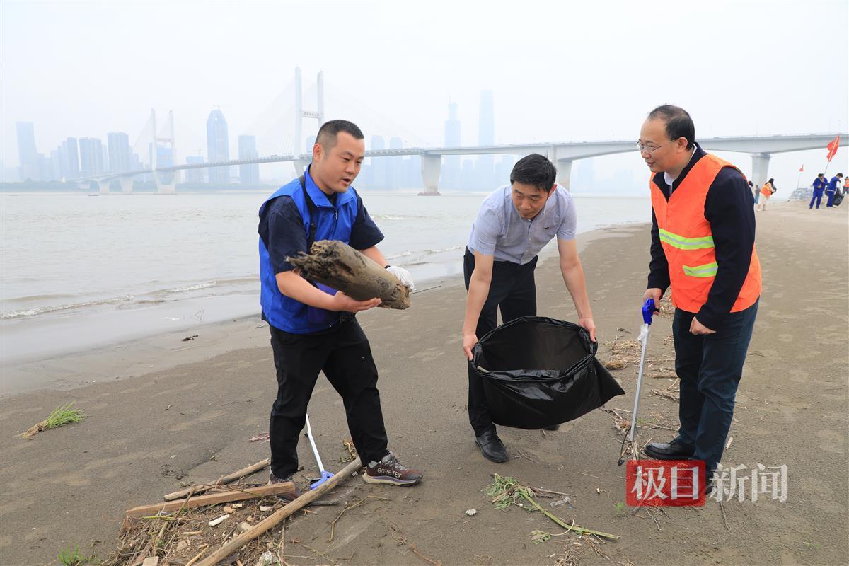 由青年教师、青年城管干部、市水域中心“净滩护江”志愿队、江岸区城管环卫青年代表组成的60多人的志愿队伍齐聚汉口江滩,沿滩涂捡拾垃圾、发放垃圾分类宣传单和便携垃圾袋,用实践诠释“珍爱地球,人与自然和谐共生”的世界地球日年度主题,为长江大保护写下生动注脚。