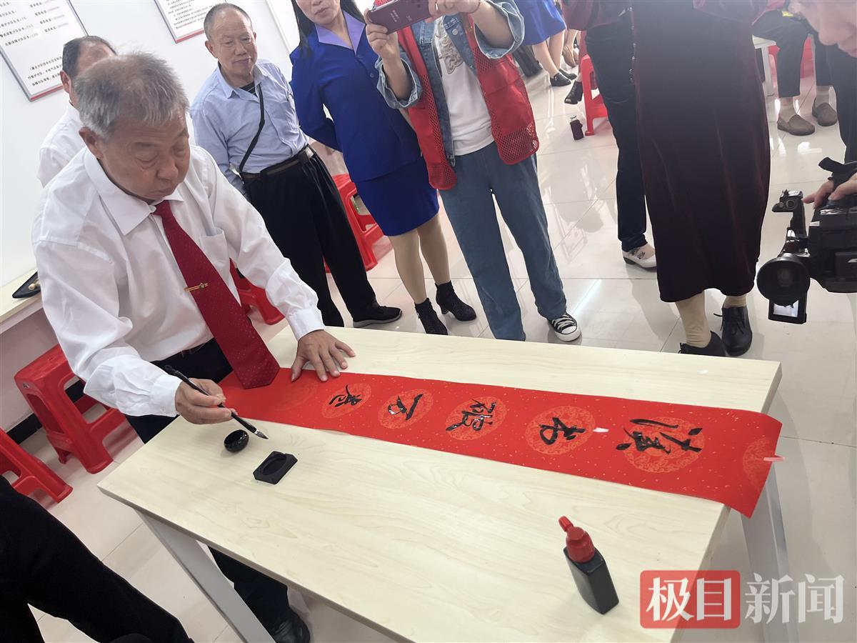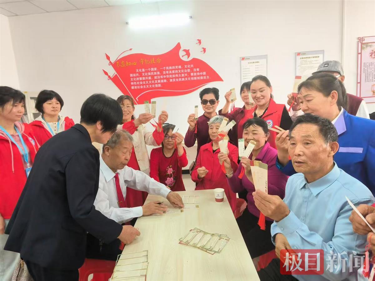 当志愿者与老人两两结对,齐声诵读朱自清散文《春》时,轻柔的文字化作春日的风,拂过每个人的心田。书法展示区,书法爱好者挥毫泼墨,“读书破万卷、下笔如有神”“共赏书香、情谊恒长”等墨宝一气呵成,将书法之美与阅读文化巧妙交融。书签制作环节,老人们在志愿者协助下,写下“前程似锦,书香做伴”“以书为马,奔赴山海”等寄语,互赠时眉眼间满是笑意。