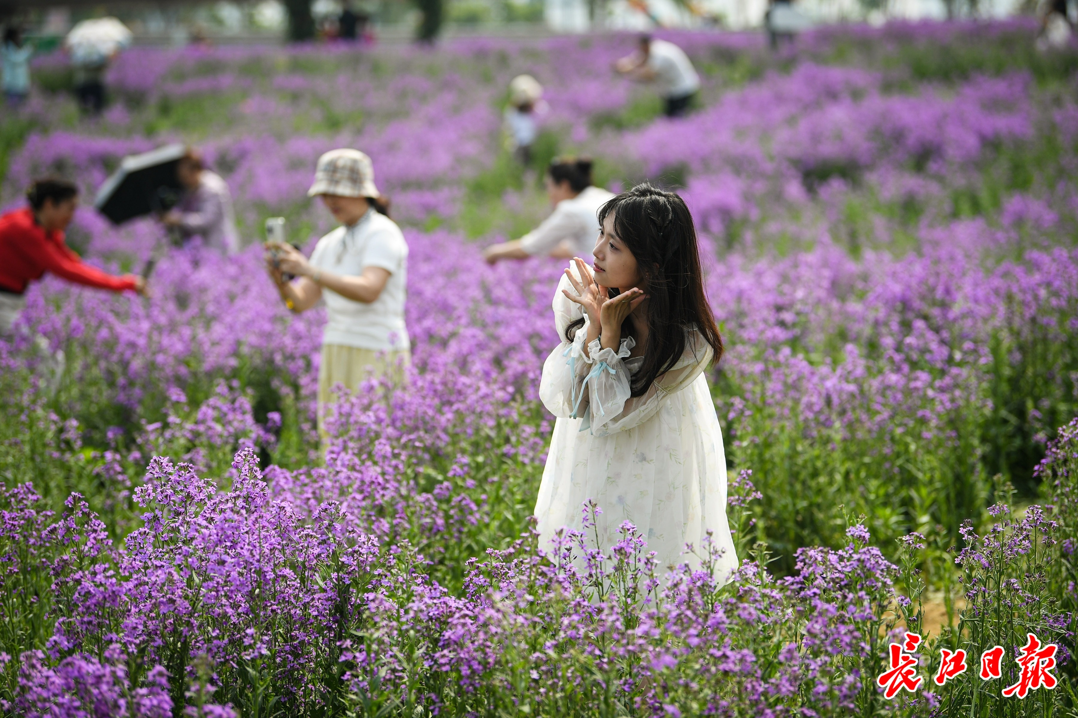 连续多日,夏小姐和闺蜜拍下了世茂希尔顿酒店转角处的蔷薇瀑布,还有芳卉园小区门口的爬藤月季花。就在不远处,汉江湾花田花海也迎来年度盛景,3万平方米的“彩虹花海”如天然调色盘般铺陈于汉江南岸,东方虞美人、紫罗兰、月见草等10余种花卉交织成绚烂画卷,吸引市民游客纷至沓来。