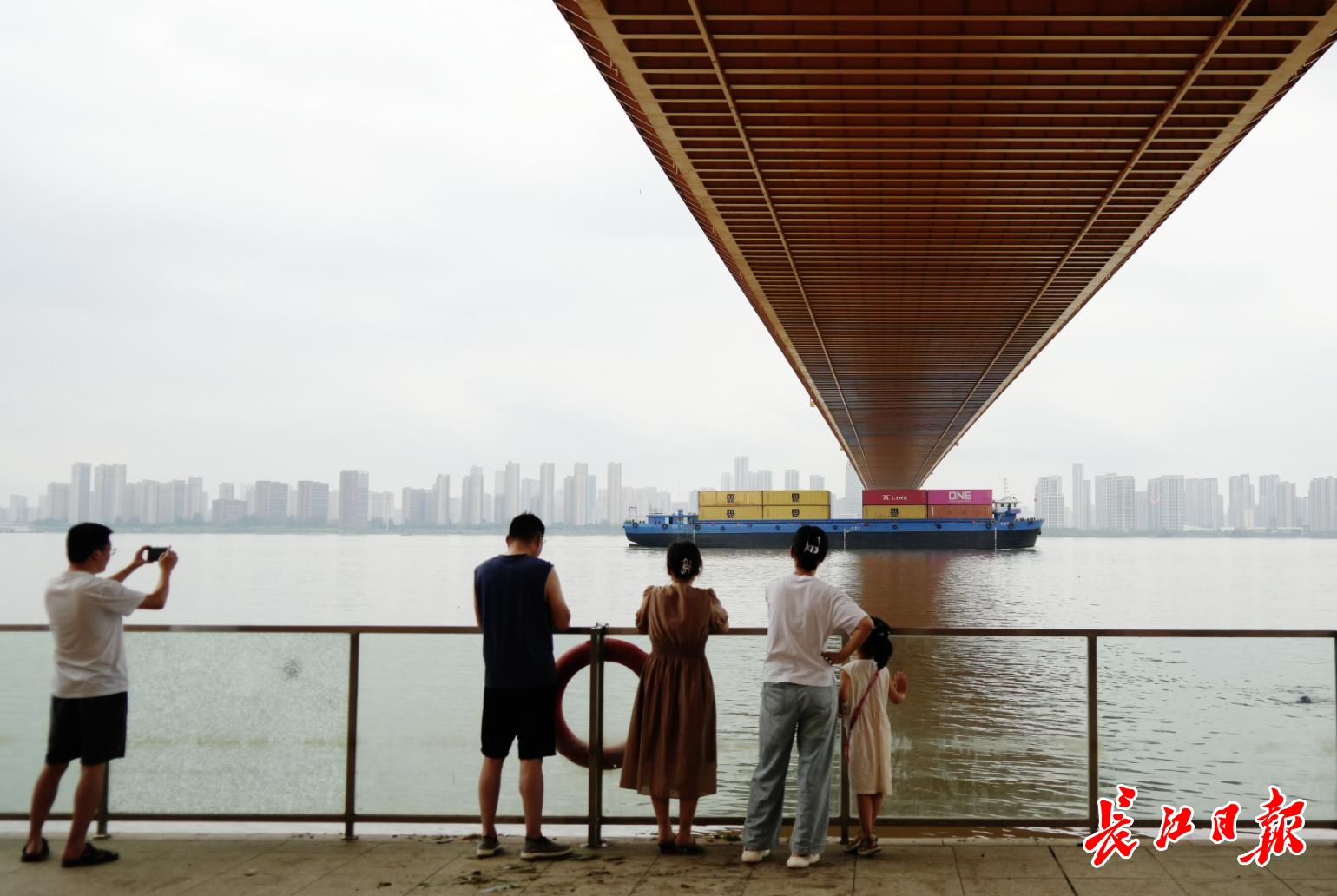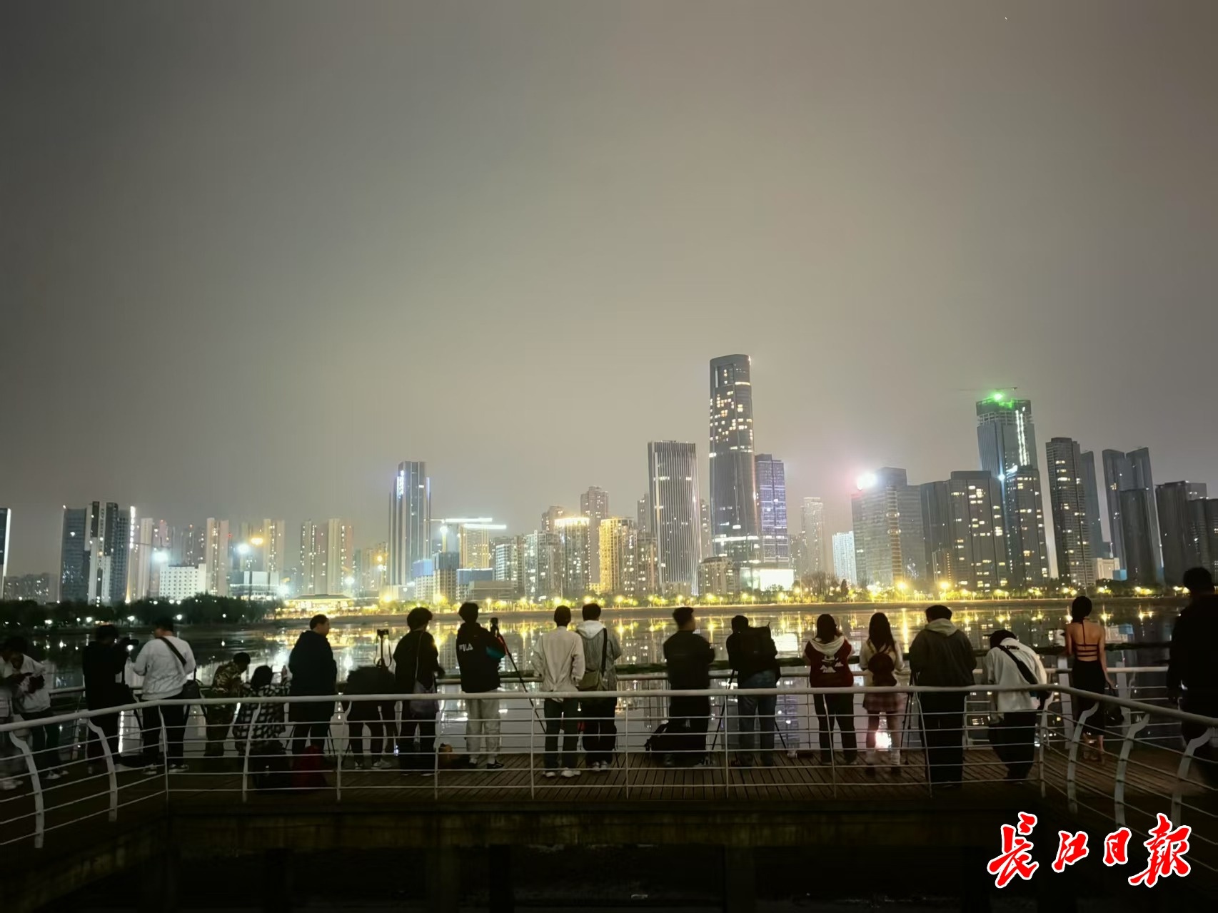 日落时分的长江大桥,成为摄影爱好者的狂欢地。武昌江滩上,人群密集,“咔嚓”声不断。来自北京的游客王女士站在江边,望着远处橙红色天空下的大桥,感慨道:“亲眼看到真的很壮观,尤其是夕阳下的大桥,怎么拍都好看!”