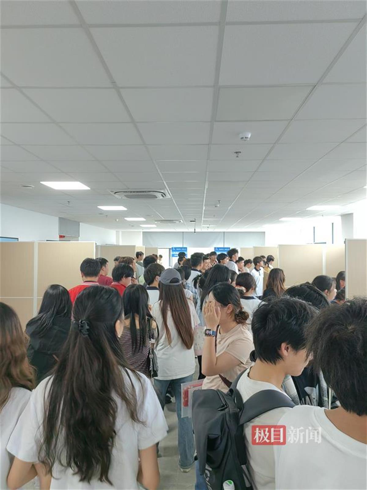 来自武汉铁路桥梁职业学院土木工程检测技术专业的安同学告诉新闻记者,学校组织一起来参加招聘会,大概来了30多人,大家来寻找合适的岗位。