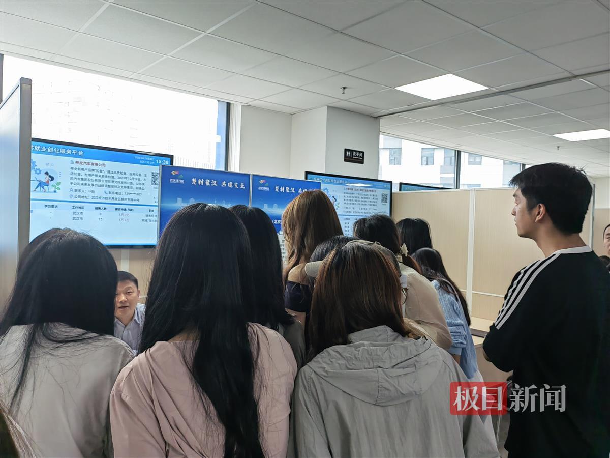 神龙汽车的展位前围了不少前来咨询的求职学子。“刚才一个班的同学都过来找我了解,估计有50至60人。”神龙汽车招聘工作人员吴先生称,这次招聘的有商务经理、直营主播等岗位,公司从“住、食、行”为员工提供福利,“住”方面提供免费的单身公寓,“吃”方面公司有食堂,考虑到主播岗位工作区域不固定,还会补贴每个月600元的外卖餐费,“行”方面家住在武汉的员工可以乘坐遍覆武汉三镇的通行车上下班。