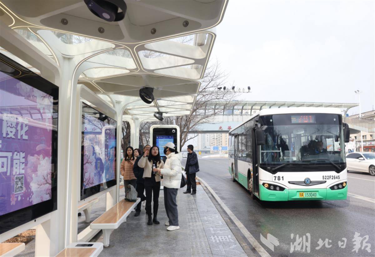 赶在樱花季前,公交站也拿出景区标准。被网友誉为“最美樱花车站”的珞瑜东路大黄村站,在樱花开放前换新升级,站台加宽三分之一,头顶无叶风扇和降温喷雾,座椅旁有无线充电,透明樱花形玻璃顶实现抬头即出片,还成了武汉市第一座配备卫生间的公交站台。