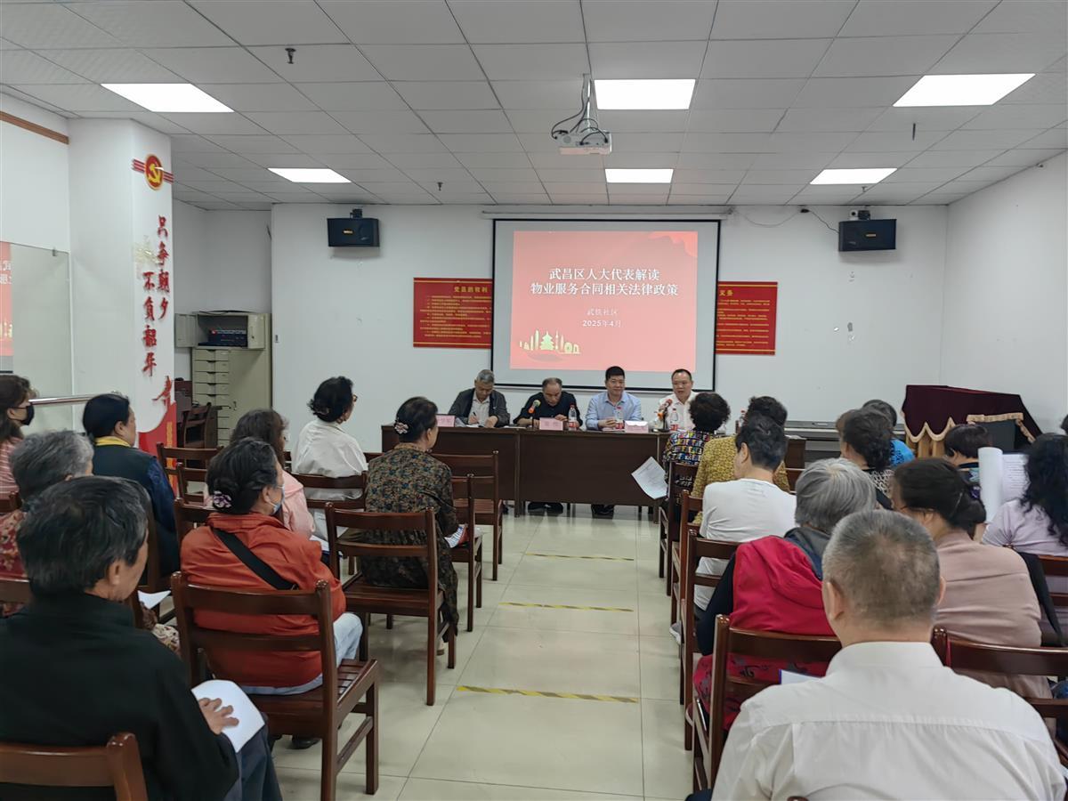 4月24日,武昌区水果湖街道武铁社区武铁洪山住宅小区召开楼栋长会议,对物业服务合同修订内容进行集中解读说明。武昌区人大代表、武汉好丰行物业管理有限公司总经理李宗盛全程参与指导,与居民代表共同破解老旧小区治理难题,彰显人大代表在基层社会治理中的积极作用。