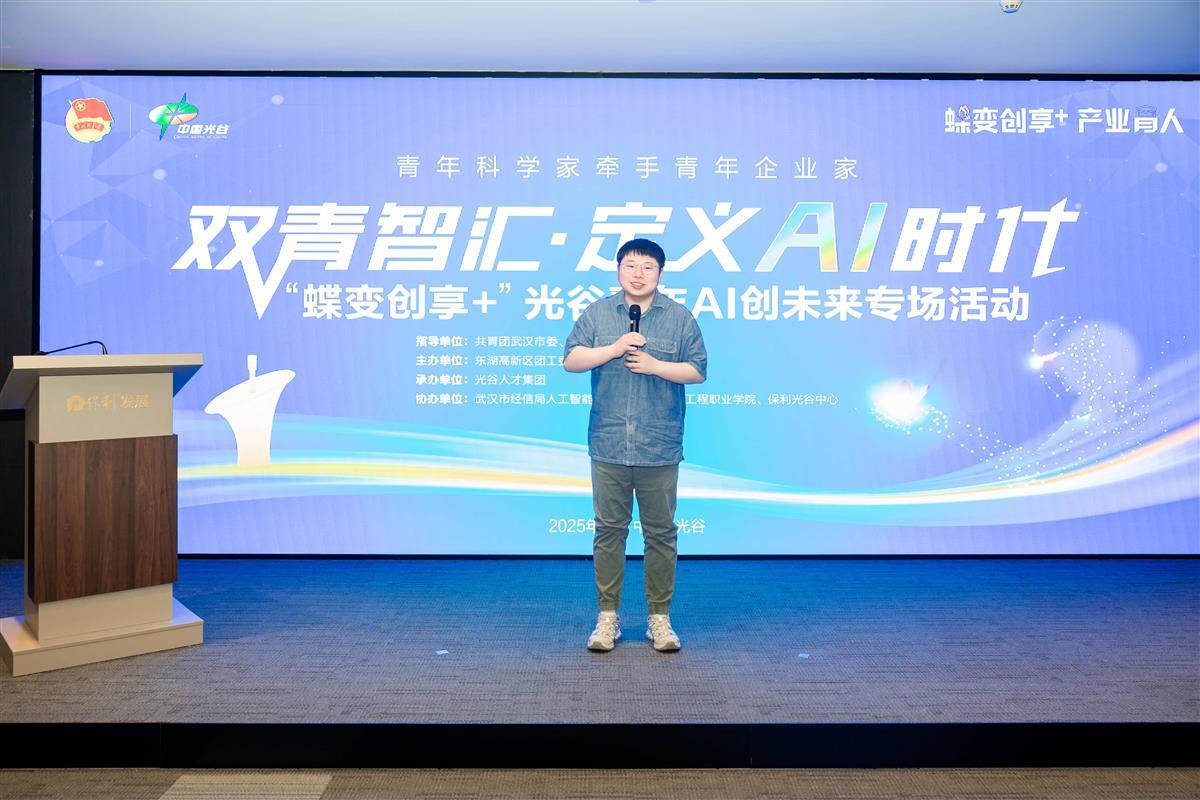 4月24日下午,由武汉东湖高新区团工委主办、光谷人才集团承办的“蝶变创享+”光谷青年AI创未来专场活动在保利光谷中心举行。人工智能领域的青年科学家、青年企业家和政府职能部门、青年学子齐聚一堂,聚焦人工智能技术突破与产业转化,还一起欣赏了由武汉大学化学博士、开饭喜剧创始人、脱口秀演员“叨叨”讲述的AI故事。