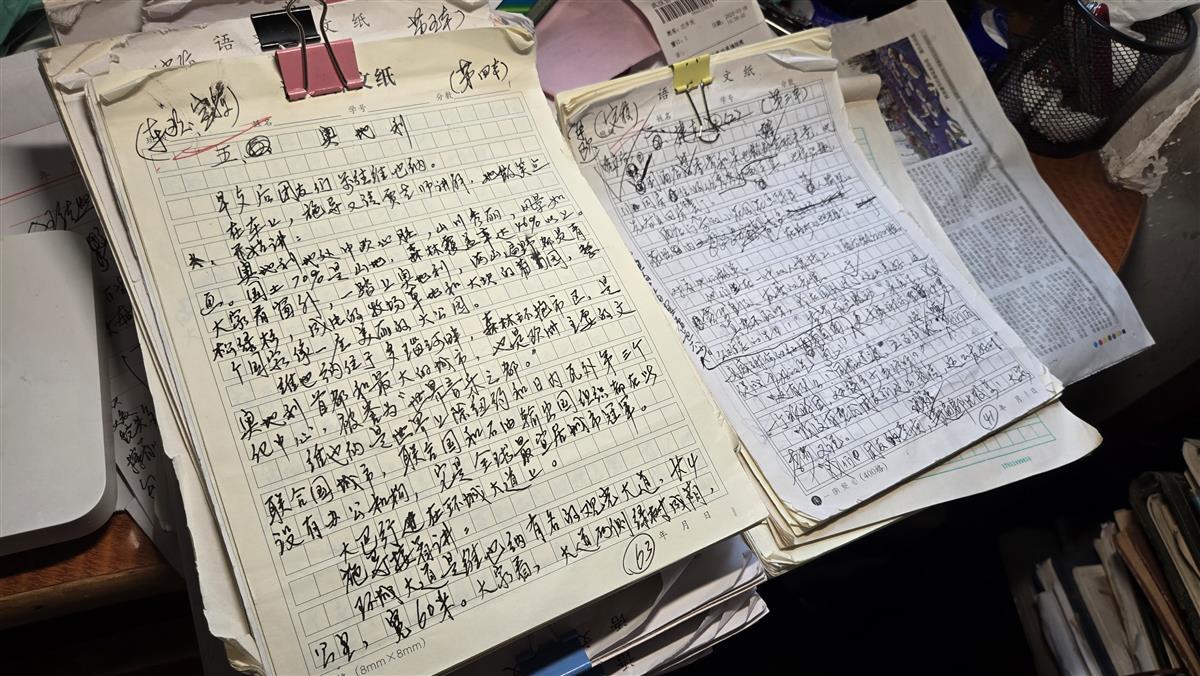 走进应齐民的卧室,可以看到他平时写作的地方就是书桌的一角,桌上堆满了手稿和书籍,这个昏暗的角落在白天也需要开着台灯才能看清。在生活上保持俭朴,但应齐民始终以高标准对待自己的写作。应齐民表示,第三本书的大致内容为第一本书的续集,但因为自己提高了标准,创作难度比前两本更大,他力求做到对同一个事物的描述不重复,避免千篇一律。平时看到一些好的词句,应齐民也会像学生时代一样认真地摘抄下来学习。