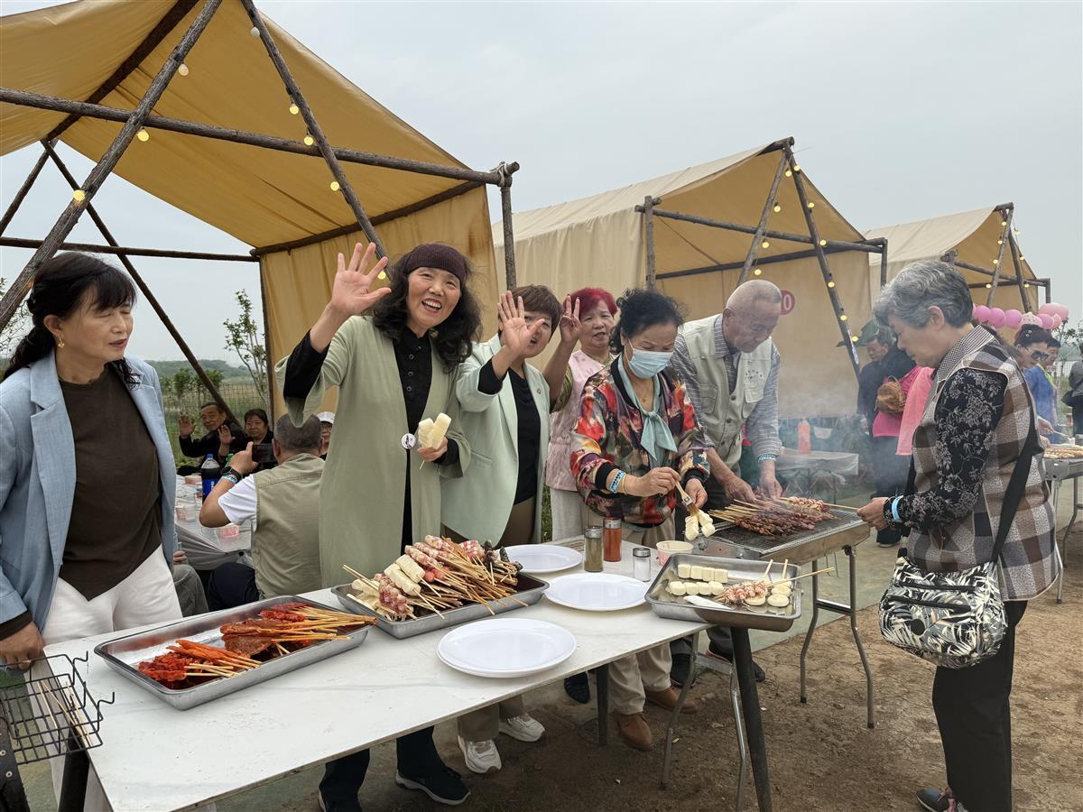 表演结束后,令人垂涎欲滴的露营烧烤环节正式开启。大家围坐在烧烤架旁,纷纷化身“烧烤大师”,熟练地翻烤着食材,撒上各种调料。不一会儿,香气四溢的烤肉、蔬菜就摆满了餐桌。大家一边品尝着美食,一边交流着生活趣事,欢声笑语回荡在公园的每一个角落。 值得一提的是,党员们还主动与居民交流互动,倾听大家的心声和需求,让居民们切实感受到党组织的关怀和温暖。