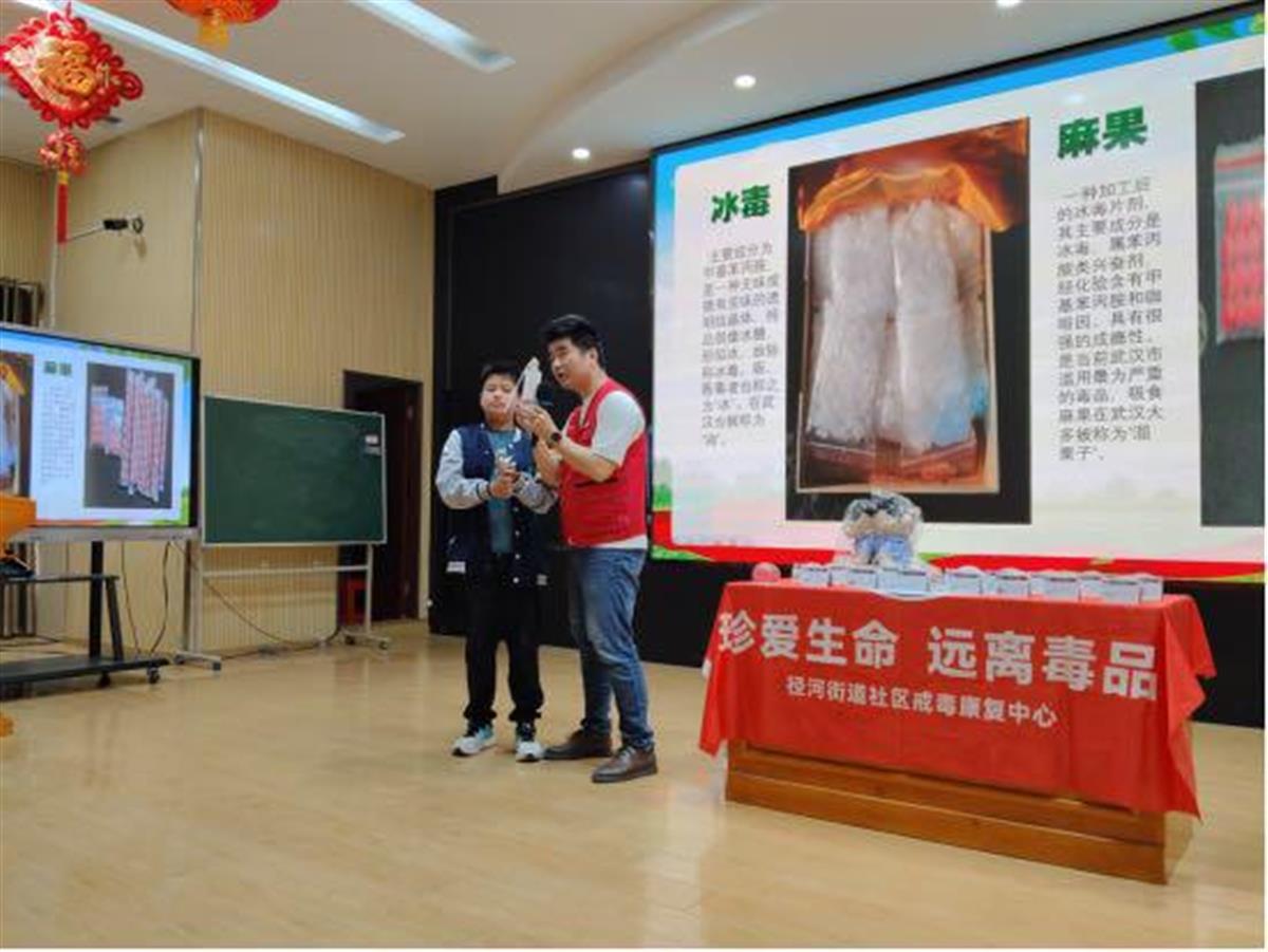 为进一步加强青少年毒品预防教育工作,切实提高在校师生识毒、拒毒、防毒能力,近日,武汉市东西湖区径河街社区戒毒康复中心联合径河街金龙湾社区,走进武汉市常青树实验学校三店校区开展了“禁毒校园行 青春不毒行”系列主题宣传活动。