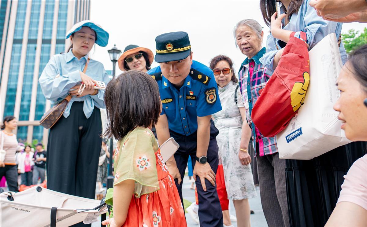 杨成一边安抚小孩情绪,一边向周边同事描述孩子特征,让同事帮助其寻找家人。为迅速找到孩子的家人,杨成及时联系了附近巡逻的警察。警察也正好接到了孩子奶奶的报警求助,正在寻找孩子。5分钟后,孩子的家人赶到了现场。