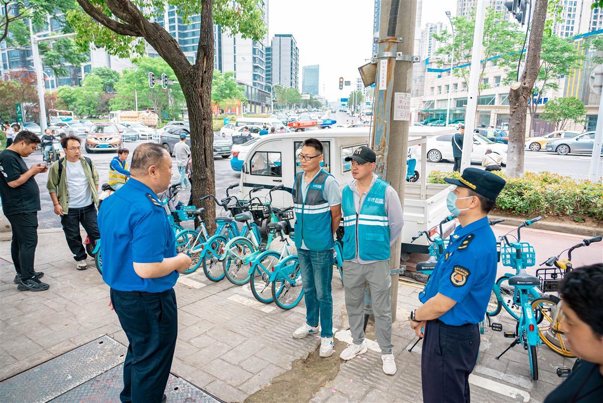 大会期间,武昌城管联合水果湖街道及单车企业实行共享单车“一点一策”,除在沙湖环路禁停点位外,在沙湖环路5个路口设置不少于18人、3辆转运保障车值守,引导单车沿公正路顺次停放,淤积单车及时转运至新体育馆路蓄水池,确保共享单车的快速转运和停放秩序。