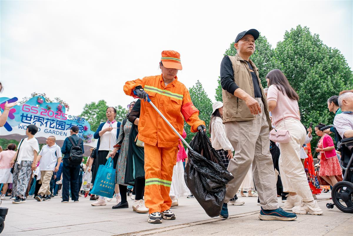 “除了强化区域内保洁,我们还担任义务志愿指路的工作。”中南路清洁队烟霞路班班长甘宏说道,在花园大会入口所在的内沙环路上,还配置了6名戴着“义务志愿指路”袖标的环卫工人,为游客提供引导服务。