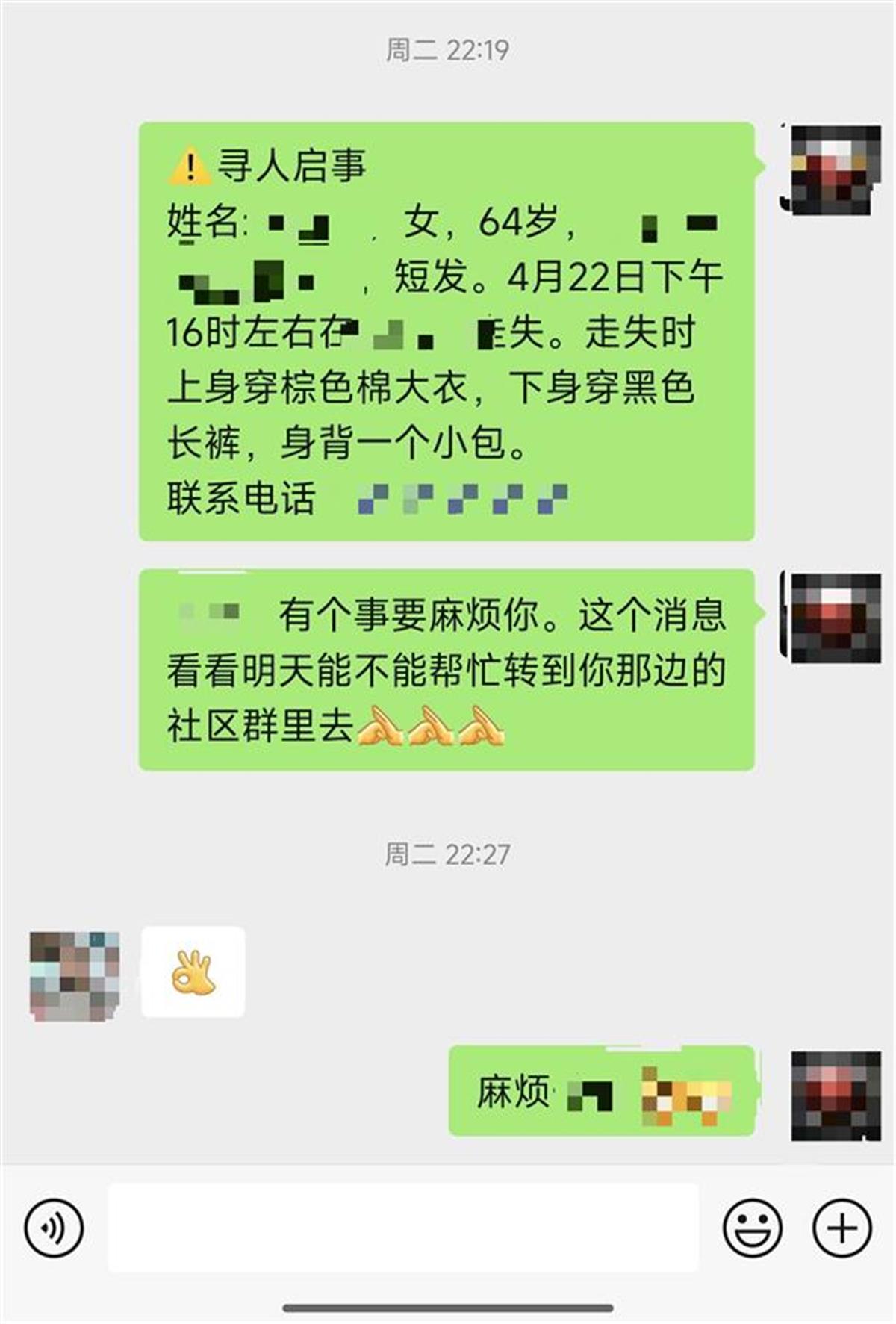 直至23时,仍搜寻无果。民警刘黄傲立即编辑寻人启事信息,通过微信群、QQ群、村湾群、社区工作群等渠道发送寻人启事,希望能收到有用线索。同时,因老人失踪地点靠近湖泗街派出所管辖范围,刘黄傲联系湖泗街派出所询问有无相关警情并请求帮忙留意失踪人员。23时30分左右,民辅警又驱车前往咸宁贺胜桥派出所,请求帮忙留意失踪人员。