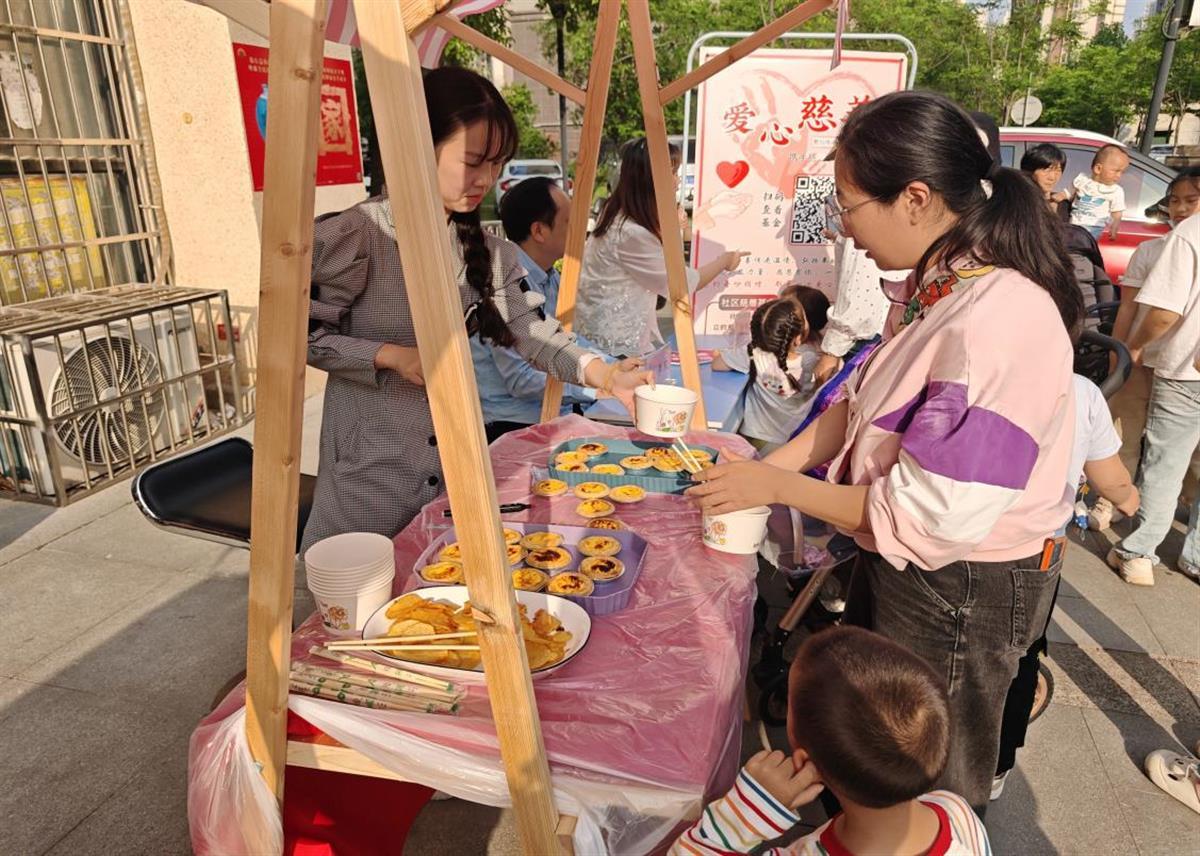 现场,爱心义卖区人气爆棚。精美的手工艺品琳琅满目,每一件都凝聚着创作者的巧思与热情;美味的特色美食香气四溢,让人垂涎欲滴。居民们通过捐赠书籍或购买喜爱的旧书来兑换非遗体验券。非遗体验区更是热闹非凡,居民们在这里体验漆扇、剪纸等传统技艺,感受传统文化的独特魅力。大家纷纷慷慨解囊,购买义卖物品,用实际行动为公益事业贡献绵薄之力。
