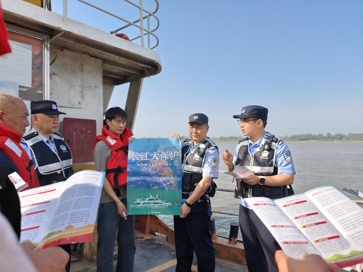 民警通过展示宣传画报、发放法律知识手册、现场案例讲解等方式,向渡船工作人员、往来群众详细解读“长江大保护”“十年禁渔”等政策及生态保护重要意义,重点普及非法捕捞法律后果、水生生物保护知识,结合最近办理的案例揭露“流丝网迷魂阵”“翻板钩+打窝船”等新型非法捕捞作案手法的危害,呼吁群众主动参与监督,共同守护长江水生生物多样性。围观群众纷纷表示:“小鱼小虾其实也有大作用。一定支持禁渔,不做破坏生态的事。”