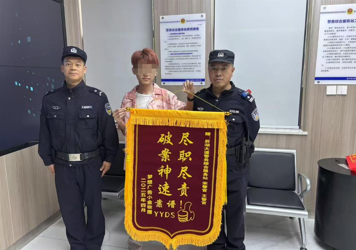 一名小伙子搬家时不慎遗失贵重物品,寻找两天无果,无奈深夜报警求助。武汉江岸民警连夜走访帮他找回。4月27日,当事人专程送上锦旗致谢。锦旗上印着“尽职尽责、破案神速!靠谱!YYDS”。