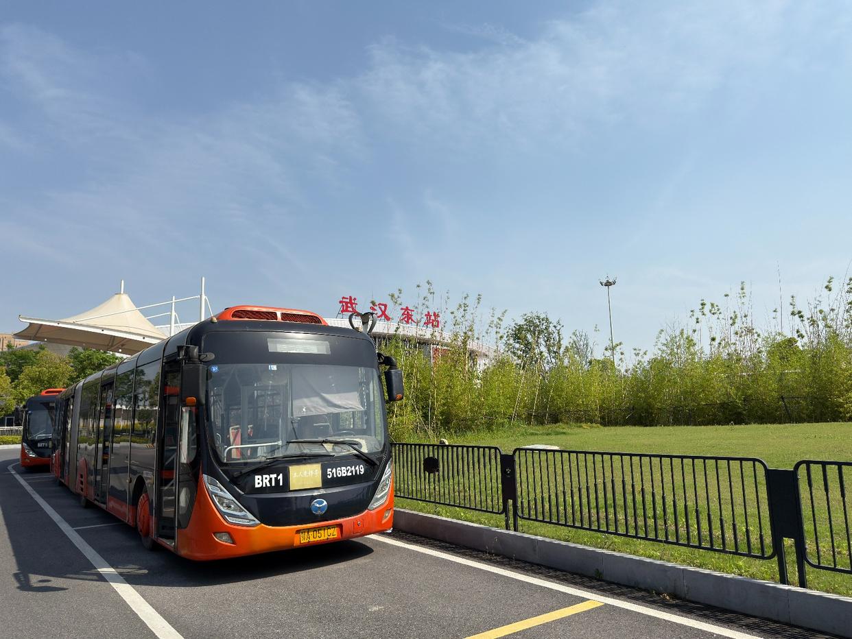 接驳武汉东站的公交线路有序等待发车。通讯员供图
