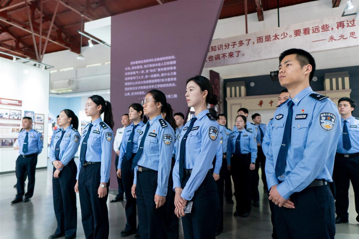活动伊始,青年民警们走进华中科技大学校史馆。这座由老机械厂改建的校史馆,承载着华科大与共和国同呼吸共命运的厚重历史。在参观过程中,青年民警们沿着校史展览的时间脉络,深入了解了华中科技大学在新中国的朝阳中诞生、在共和国的旗帜下成长、在改革开放中腾飞以及在新时代迈向世界一流的发展历程。近900张图片、100余件实物、20个重点电子展项,生动展现了学校与共和国同呼吸共命运的奋斗篇章。民警们沉浸其中,深受触动,对高校的发展历程和深厚文化底蕴有了更为深刻地认识。